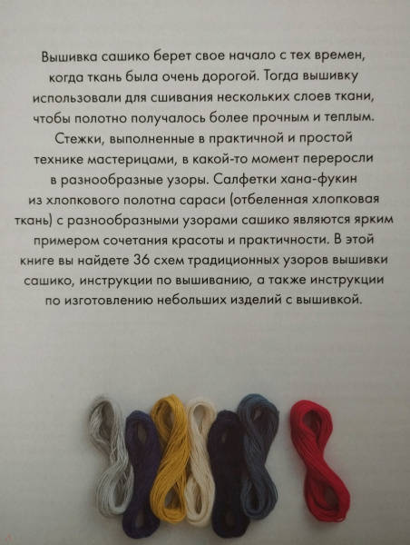 ОписаниеУникальная книга, покорившая мастериц со всего мира, переведенная на множество языков и ставшая безоговорочным бестселлером во многих странах! Самое понятное и красочное пособие для всех, кто хочет освоить традиционную японскую вышивку сашико и своими руками создавать стильные шедевры!Сашико берет свое начало с древних времен, когда ткань производилась вручную и стоила очень дорого. Тогда эту технику вышивки использовали для сшивания нескольких слоев тонкой ткани, чтобы полотно получалось более прочным и теплым. Постепенно практичные и простые стежки превращались в ритмичные узоры, и со временем сашико стали считать отдельным видом вышивального искусства. Как и любой вид японского искусства или рукоделия, сашико - яркий пример сочетания красоты и практичности. И как и в любом древнем искусстве, основные мотивы и узоры играют символическую или даже мистическую роль. Так, узор кикко, или "панцирь черепахи", считается символом долголетия. А морские волны сэйгайха, составленные из веерообразных элементов, символизирующих набегающие и убегающие волны - по поверью приносит удачу. Многочисленные проекты-аксессуары, представленные в книге, покажут самые разные способы практического применения этой чудесной вышивки в жизни.По-японски скрупулезные и подробные описания и инструкции, четкие схемы - все это позволит стать настоящим мастером сашико любому желающему, даже обладающему лишь начальными навыками вышивки.Раскройте для себя самый современный тренд древнего искусства!СвернутьУникальная книга, покорившая мастериц со всего мира, переведенная на множество языков и ставшая безоговорочным бестселлером во многих странах! Самое понятное и красочное пособие для всех, кто хочет освоить традиционную японскую вышивку сашико и своими руками создавать стильные шедевры!Сашико берет свое начало с древних времен, когда ткань производилась вручную и стоила очень дорого. Тогда эту технику вышивки использовали для сшивания нескольких слоев тонкой ткани, чтобы полотно получалось более прочным и теплым. Постепенно практичные и простые стежки превращались в ритмичные узоры, и со временем сашико стали считать отдельным видом вышивального искусства. Как и любой вид японского искусства или рукоделия, сашико - яркий пример сочетания красоты и практичности. И как и в любом древнем искусстве, основные мотивы и узоры играют символическую или даже мистическую роль. Так, узор кикко, или "панцирь черепахи", считается символом долголетия. А морские волны сэйгайха, составленные из веерообразных элементов, символизирующих набегающие и убегающие волны - по поверью приносит удачу. Многочисленные проекты-аксессуары, представленные в книге, покажут самые разные способы практического применения этой чудесной вышивки в жизни.По-японски скрупулезные и подробные описания и инструкции, четкие схемы - все это позволит стать настоящим мастером сашико любому желающему, даже обладающему лишь начальными навыками вышивки.Раскройте для себя самый современный тренд древнего искусства!СвернутьСвернуть