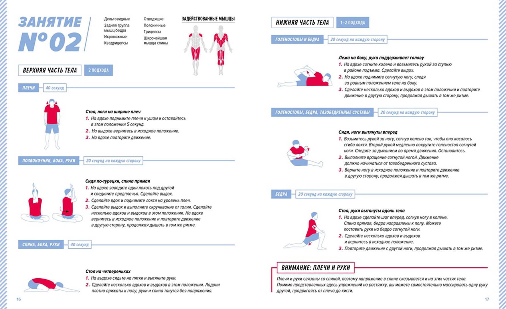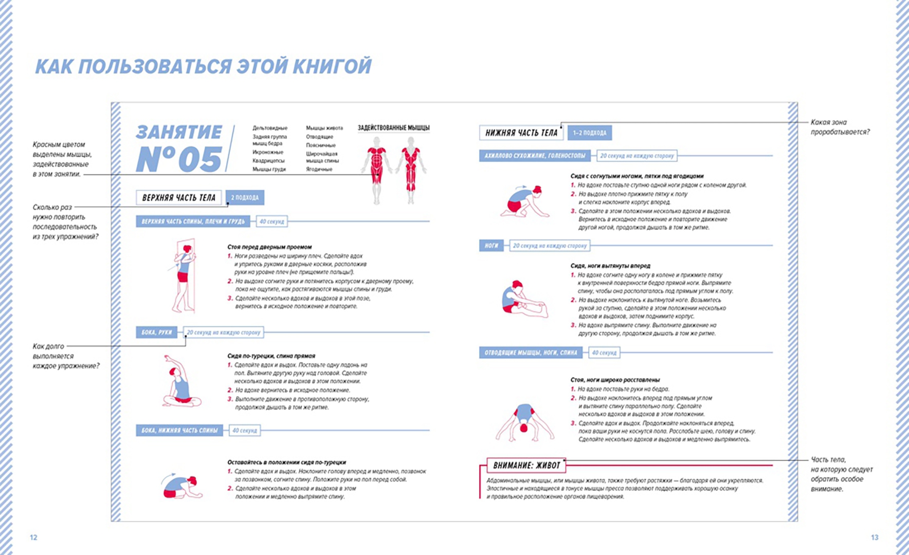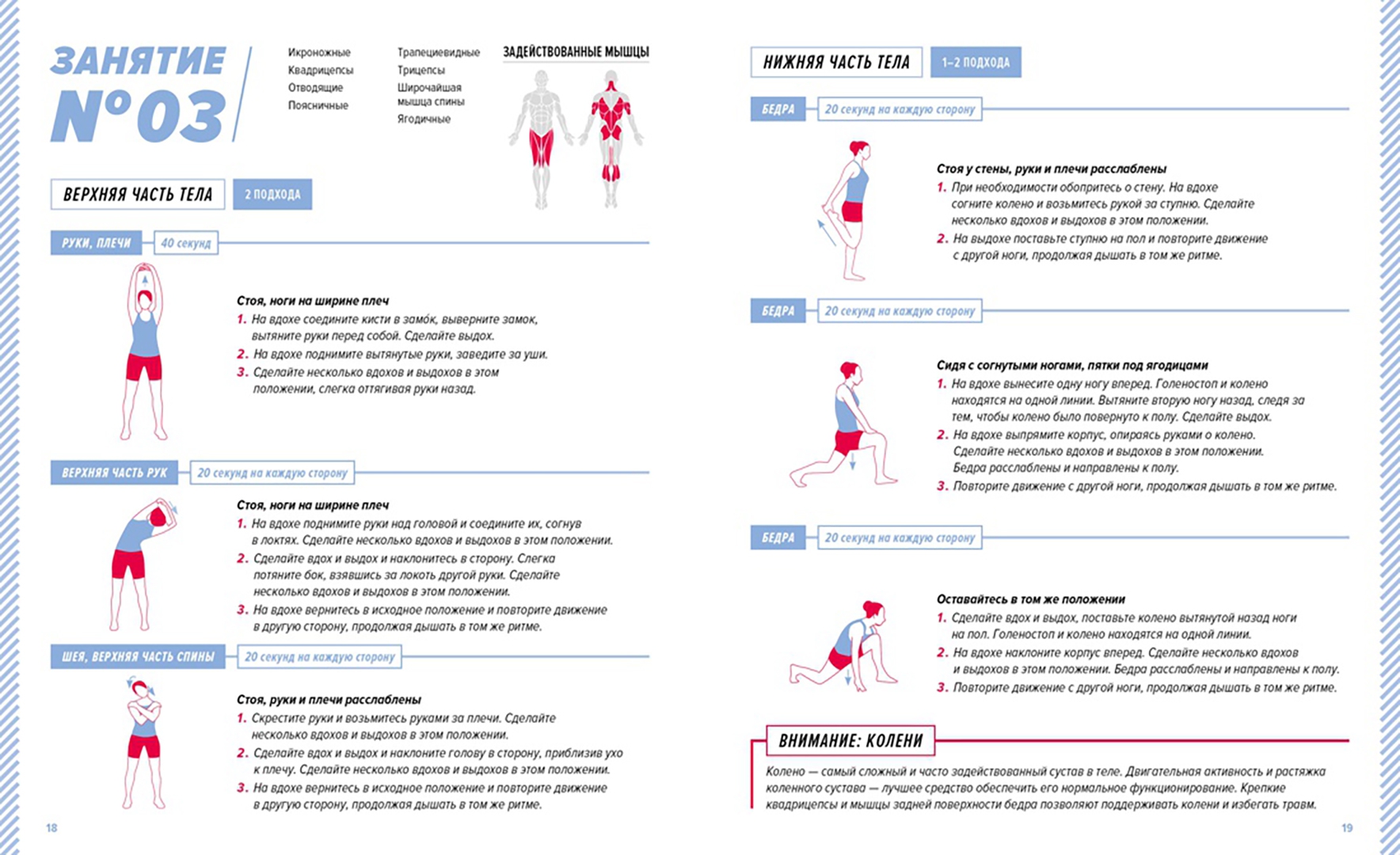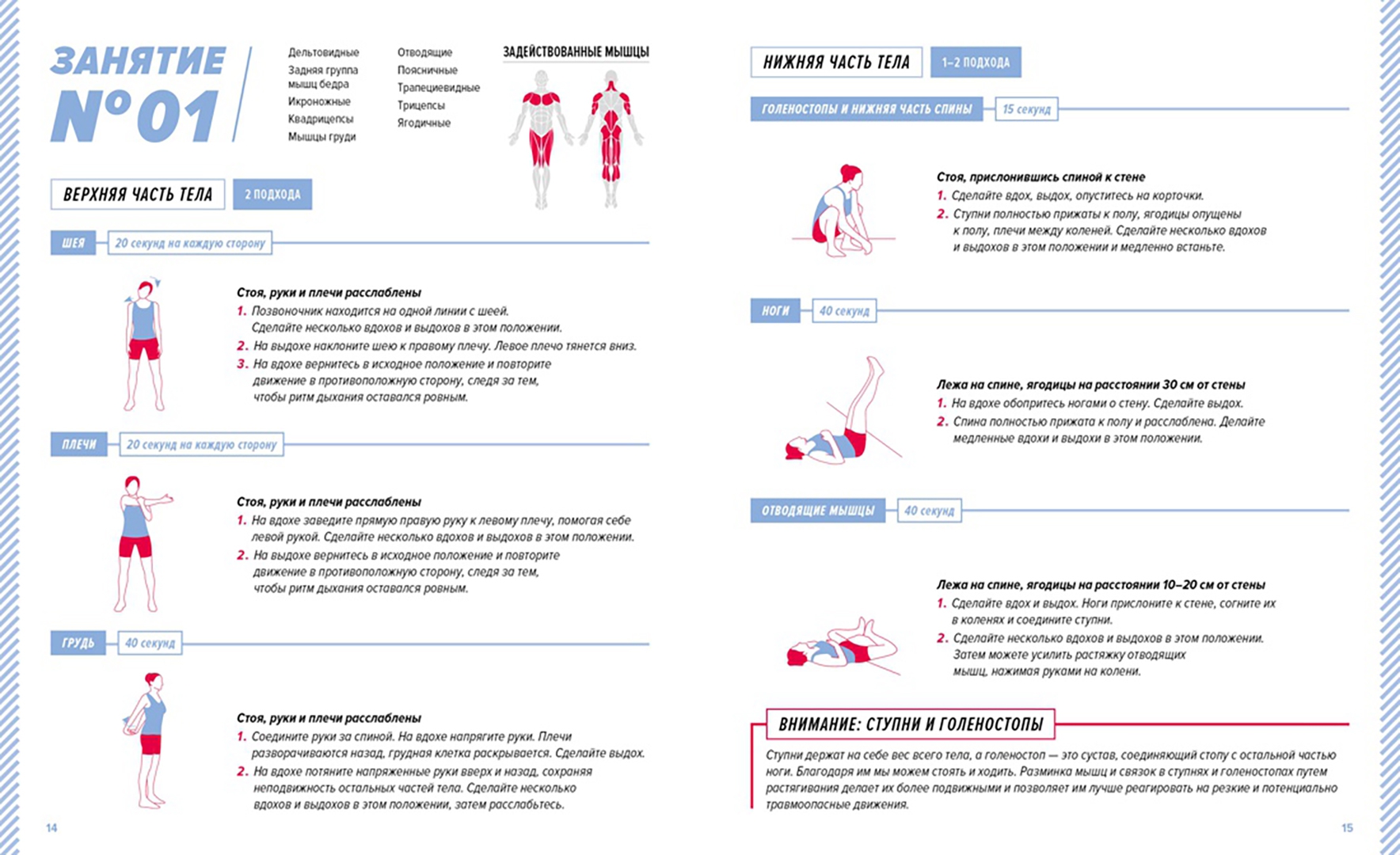 ОписаниеДоказано: всего 7 минут регулярных физических занятий могут принести огромную пользу для всего организма. Комплексная программа коротких оздоровительных тренировок, состоящих из мягких упражнений на растяжку, помогает обрести подвижность и гибкость, поддержать здоровье суставов, мышц и связок, а также внутренних органов. Растяжка, или стретчинг, обладает отличным расслабляющим и успокаивающим эффектом, снимает телесное и эмоциональное напряжение. Упражнения можно выполнять в любое время дня и где угодно, вам не понадобится никаких специальных приспособлений и инвентаря. По этой книге можно заниматься самостоятельно, даже если вы новичок: все тренировки детально проработаны профессиональным преподавателем стретчинга и йоги, даны понятные иллюстрации и подробные пошаговые описания каждого упражнения.Доказано: всего 7 минут регулярных физических занятий могут принести огромную пользу для всего организма. Комплексная программа коротких оздоровительных тренировок, состоящих из мягких упражнений на растяжку, помогает обрести подвижность и гибкость, поддержать здоровье суставов, мышц и связок, а также внутренних органов. Растяжка, или стретчинг, обладает отличным расслабляющим и успокаивающим эффектом, снимает телесное и эмоциональное напряжение. Упражнения можно выполнять в любое время дня и где угодно, вам не понадобится никаких специальных приспособлений и инвентаря. По этой книге можно заниматься самостоятельно, даже если вы новичок: все тренировки детально проработаны профессиональным преподавателем стретчинга и йоги, даны понятные иллюстрации и подробные пошаговые описания каждого упражнения.