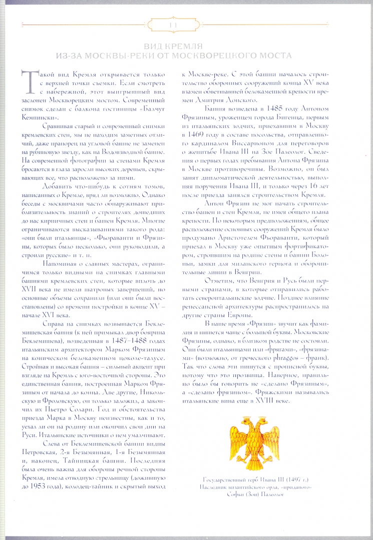 ОписаниеВ основе книги - 88 старинных фотографий Москвы из коллекции предпринимателя, коллекционера и знатока московской истории Н.А.Найденова, по инициативе и при финансировании которого состоялась самая крупномасштабная съемка столицы конца XIX века.Архивные фотографии сопровождаются современными снимками тех же мест и зданий и пояснительными текстами.На откидных клапанах представлены старинные панорамы города с обозначением и описанием самых заметных сооружений.В основе книги - 88 старинных фотографий Москвы из коллекции предпринимателя, коллекционера и знатока московской истории Н.А.Найденова, по инициативе и при финансировании которого состоялась самая крупномасштабная съемка столицы конца XIX века.Архивные фотографии сопровождаются современными снимками тех же мест и зданий и пояснительными текстами.На откидных клапанах представлены старинные панорамы города с обозначением и описанием самых заметных сооружений.