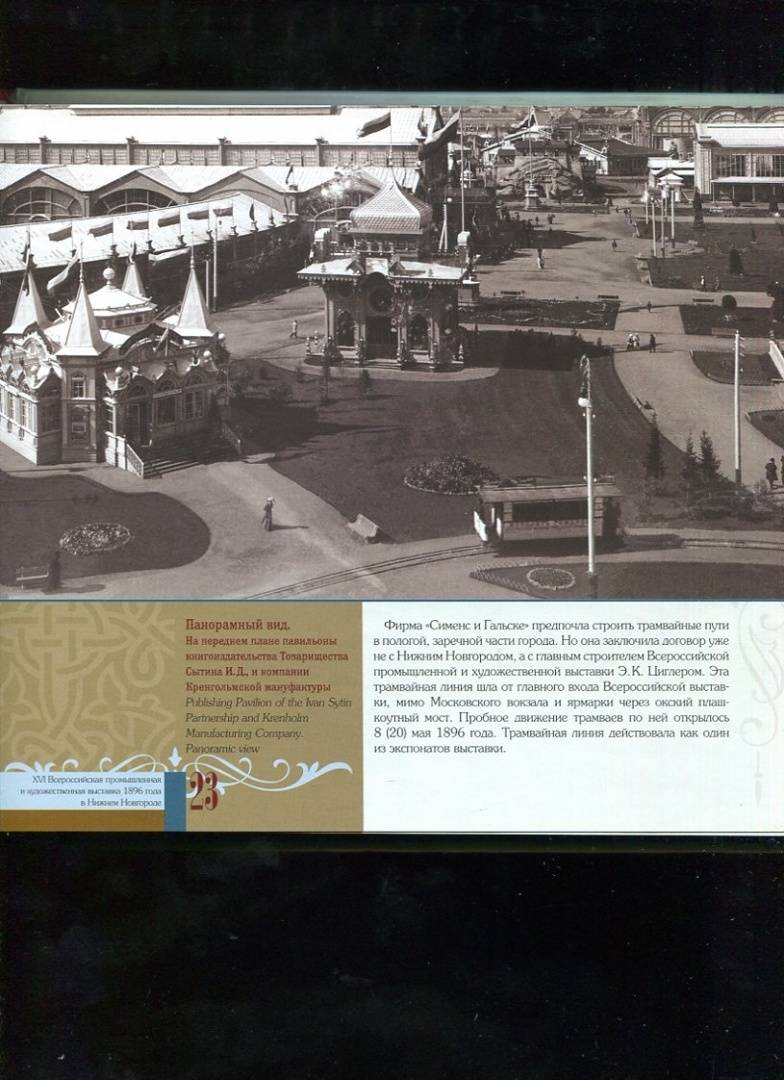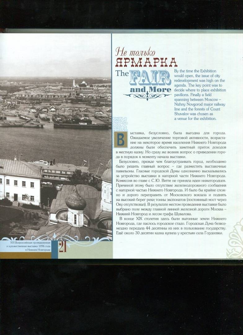 ОписаниеВ 2021 году исполнилось 125 лет со времени проведения XVI Всероссийской промышленной и художественной выставки. Памятная дата отмечалась в рамках празднования 800-летнего юбилея Нижнего Новгорода, где в 1896 году и состоялась крупнейшая выставка дореволюционной России. Эта выставка вошла в историю, продемонстрировав феномен развития промышленности, сельского хозяйства и расцвета всех видов искусств.Выбор города был неслучаен. Нижний Новгород на протяжении столетий был средоточием торговой жизни России. Удобство месторасположения, развитие железнодорожного и речного транспорта сделало возможным проведение этого выдающегося события, запечатленного мастерами фотографии.Художественный альбом "XVI Всероссийская промышленная и художественная выставка 1896 года в Нижнем Новгороде" впервые был представлен читателям в 2016 году. В юбилейный для родного города год издательство ДЕКОМ приняло решение о переиздании полюбившейся многим книги. Альбом включает разделы, посвященные подготовке выставки, ее влиянию на облик города, многочисленным отделам и павильонам, визиту императорской четы на выставку, и разумеется, экспонентам-нижегородцам, представителям именитых купеческих и промышленных фамилий. Нижегородцы и гости Нижнего узнают, что писали о Всероссийской выставке тогдашние газеты, мемуаристы-участники и посетители, и смогут заново открыть для себя город над великими русскими реками.2-е издание. Издание на русском и английском языках.СвернутьВ 2021 году исполнилось 125 лет со времени проведения XVI Всероссийской промышленной и художественной выставки. Памятная дата отмечалась в рамках празднования 800-летнего юбилея Нижнего Новгорода, где в 1896 году и состоялась крупнейшая выставка дореволюционной России. Эта выставка вошла в историю, продемонстрировав феномен развития промышленности, сельского хозяйства и расцвета всех видов искусств.Выбор города был неслучаен. Нижний Новгород на протяжении столетий был средоточием торговой жизни России. Удобство месторасположения, развитие железнодорожного и речного транспорта сделало возможным проведение этого выдающегося события, запечатленного мастерами фотографии.Художественный альбом "XVI Всероссийская промышленная и художественная выставка 1896 года в Нижнем Новгороде" впервые был представлен читателям в 2016 году. В юбилейный для родного города год издательство ДЕКОМ приняло решение о переиздании полюбившейся многим книги. Альбом включает разделы, посвященные подготовке выставки, ее влиянию на облик города, многочисленным отделам и павильонам, визиту императорской четы на выставку, и разумеется, экспонентам-нижегородцам, представителям именитых купеческих и промышленных фамилий. Нижегородцы и гости Нижнего узнают, что писали о Всероссийской выставке тогдашние газеты, мемуаристы-участники и посетители, и смогут заново открыть для себя город над великими русскими реками.2-е издание. Издание на русском и английском языках.СвернутьСвернуть