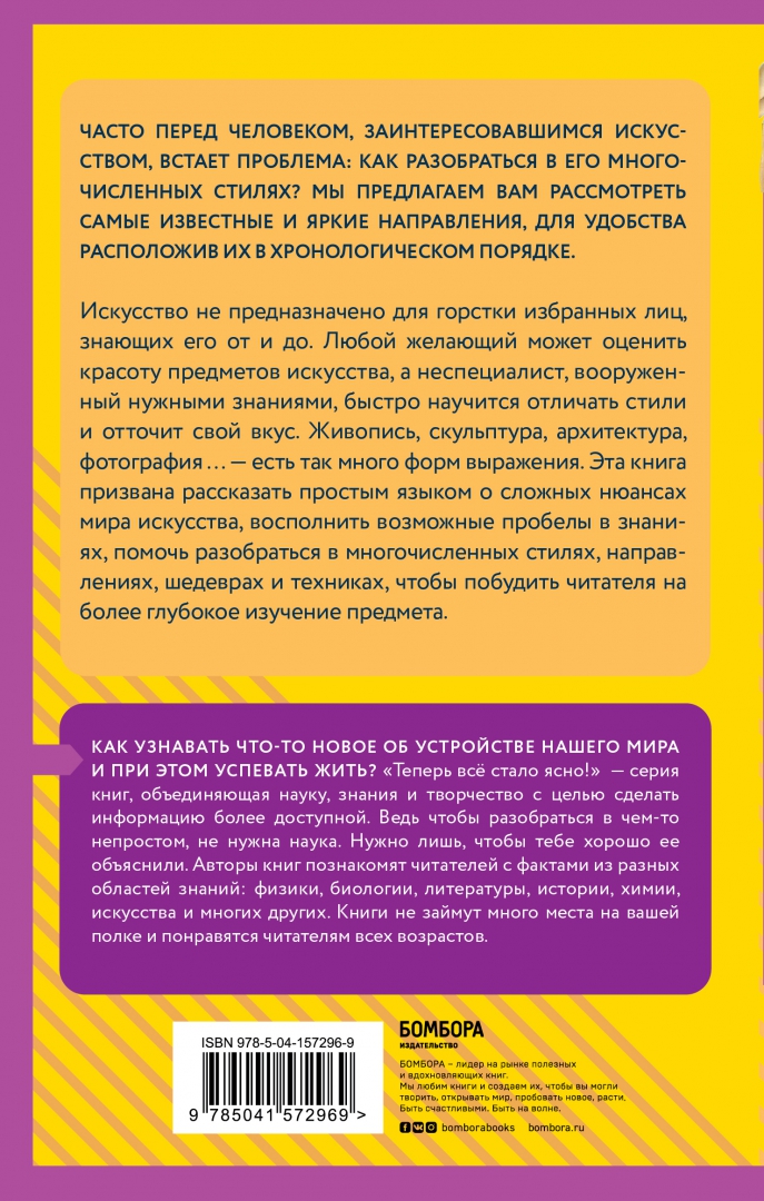 ОписаниеПонятие "искусство" так многогранно: от нарисованных безвестным первобытным мастером животных на стене пещеры до умопомрачительных фантазий Сальвадора Дали, от декора средневековых соборов до современных абстрактных скульптур и авангардных театральных постановок. Эта книга призвана рассказать простым языком о таком масштабном явлении как искусство, восполнить возможные пробелы в знаниях, помочь разобраться в многочисленных стилях, направлениях, шедеврах и техниках и побудить читателя на более глубокое изучение предмета. Книги этой серии: - развлекательно и доступно расскажут о важных темах; - соединят множество разрозненных фактов в вашей голове и наведут полный порядок в знаниях; - приведут вас к самой сути обсуждаемого вопроса с помощью удобного макета и понятных слов; - вызовут огромную тягу к знаниям и желание постоянно учиться.Понятие "искусство" так многогранно: от нарисованных безвестным первобытным мастером животных на стене пещеры до умопомрачительных фантазий Сальвадора Дали, от декора средневековых соборов до современных абстрактных скульптур и авангардных театральных постановок. Эта книга призвана рассказать простым языком о таком масштабном явлении как искусство, восполнить возможные пробелы в знаниях, помочь разобраться в многочисленных стилях, направлениях, шедеврах и техниках и побудить читателя на более глубокое изучение предмета. Книги этой серии: - развлекательно и доступно расскажут о важных темах; - соединят множество разрозненных фактов в вашей голове и наведут полный порядок в знаниях; - приведут вас к самой сути обсуждаемого вопроса с помощью удобного макета и понятных слов; - вызовут огромную тягу к знаниям и желание постоянно учиться.
