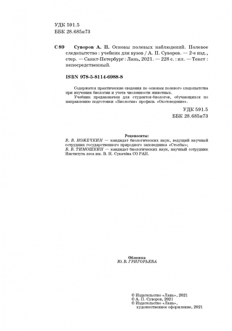 Объем, стр. 228 ISBN 978-5-8114-6563-7, 978-5-8114-6988-8 Автор Суворов Анатолий Прохорович Серия Охотничье хозяйство Год издания книги 2020 Тип обложки Твердый переплет Иллюстрации Черно-белые Вес, г 420г Размеры 242х172х13 мм - Отзывы