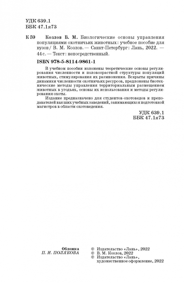 --Владимир Козлов: Биологические основы управления популяциями охотничьих животных. Учебное пособие для вузовХобби и развлечения. Организация досуга. ПесенникиИскусство. Культура. Музыка. Театр. КиноТуризм. Путешествие. Страноведение(Краеведение)Путеводители.Атласы дорог.КартыПутевые очерки. Рассказы путешественников и натуралистовОхота. Рыбалка. СобирательствоРастениеводствоКоллекционированиеТуризм. Путеводители. ТранспортРазвлечения. ПраздникиРемонт. Строительство. ИнтерьерДомашние ремесла. РукоделиеУход за животнымиФитнес. Спорт. СамооборонаКулинарияКультура. ИскусствоДомоводство