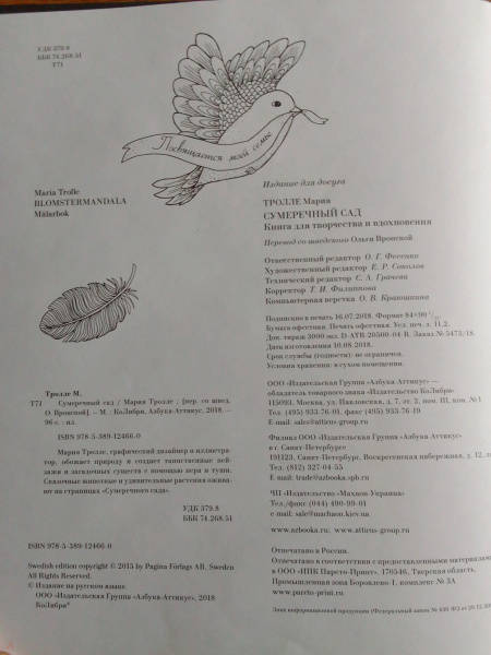 ОписаниеМария Тролле, графический дизайнер и иллюстратор, обожает природу и создаёт таинственные пейзажи и загадочных существ с помощью пера и туши. Сказочные животные и удивительные растения оживают на страницах «Сумеречного сада».Мария Тролле, графический дизайнер и иллюстратор, обожает природу и создаёт таинственные пейзажи и загадочных существ с помощью пера и туши. Сказочные животные и удивительные растения оживают на страницах «Сумеречного сада».