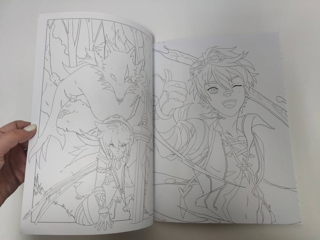 Путешествие по Тейвату с Итэром, Люмин и Паймон. Раскрась любимый волшебный мир!