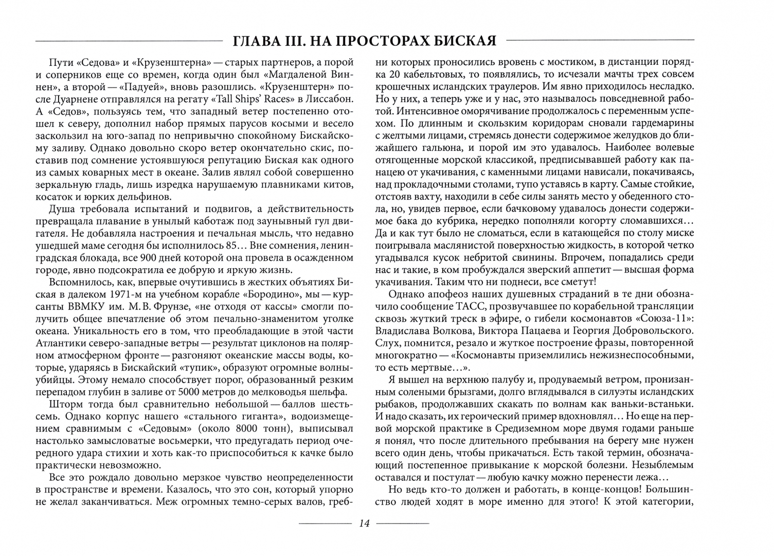 ОписаниеЭта книга-альбом ни в коей мере не претендует на полное освещение кругосветного плавания учебного барка «Седов» 2012-2013 годов. Участников грандиозной фотоэпопеи, сопровождавшей 14-месячный поход, трудно перечесть, а темпы развития современной техники практически уравняли в возможностях официальных «летописцев» и заезжих профессионалов с бесчисленной когортой любителей: членов экипажа, курсантов, журналистов, пассажиров-практикантов и просто гостей корабля. Мы благодарны друзьям-соплавателям, не только разделивших с нами радости кругосветки, но и значительно дополнивших своими шедеврами наш рассказ об увиденном…Эта книга-альбом ни в коей мере не претендует на полное освещение кругосветного плавания учебного барка «Седов» 2012-2013 годов. Участников грандиозной фотоэпопеи, сопровождавшей 14-месячный поход, трудно перечесть, а темпы развития современной техники практически уравняли в возможностях официальных «летописцев» и заезжих профессионалов с бесчисленной когортой любителей: членов экипажа, курсантов, журналистов, пассажиров-практикантов и просто гостей корабля. Мы благодарны друзьям-соплавателям, не только разделивших с нами радости кругосветки, но и значительно дополнивших своими шедеврами наш рассказ об увиденном…