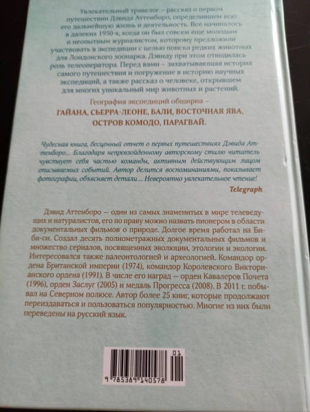 ОписаниеЖивая легенда и ведущий документального сериала о дикой природе "Планета Земля" на Би-би-си сэр Дэвид Аттенборо рассказывает историю своей карьеры телеведущего и натуралиста, на заре которой ему предоставилась уникальная возможность - путешествовать по миру в поисках редких животных для коллекции Лондонского зоопарка и снимать экспедицию для нового шоу Би-би-си "Зооквест" (Zoo Quest). В этой книге собраны истории его первых путешествий. Проживая бок о бок с местными племенами во время походов в поисках гигантских муравьедов в Гайане, комодских драконов в Индонезии и броненосцев в Парагвае, он вместе с остальной командой боролся с речными рыбами-людоедами, агрессивными дикобразами и дикими свиньями, а также с коварством местности и непредсказуемостью погоды, чтобы запечатлеть невероятную красоту и биоразнообразие отдаленных регионов. Эта книга, написанная с неповторимым остроумием и обаянием, - не просто история замечательного приключения, но и история человека, который делится с нами любовью к природе и выступает в ее защиту. "Чтобы программа удалась, у экспедиции должна быть четкая цель - найти такое редкое существо, какого нет ни в одном зоопарке мира, такое загадочное, диковинное, поразительное создание, за поисками которого зрители, замерев у экранов, следили бы из передачи в передачу". (Дэвид Аттенборо)СвернутьЖивая легенда и ведущий документального сериала о дикой природе "Планета Земля" на Би-би-си сэр Дэвид Аттенборо рассказывает историю своей карьеры телеведущего и натуралиста, на заре которой ему предоставилась уникальная возможность - путешествовать по миру в поисках редких животных для коллекции Лондонского зоопарка и снимать экспедицию для нового шоу Би-би-си "Зооквест" (Zoo Quest). В этой книге собраны истории его первых путешествий. Проживая бок о бок с местными племенами во время походов в поисках гигантских муравьедов в Гайане, комодских драконов в Индонезии и броненосцев в Парагвае, он вместе с остальной командой боролся с речными рыбами-людоедами, агрессивными дикобразами и дикими свиньями, а также с коварством местности и непредсказуемостью погоды, чтобы запечатлеть невероятную красоту и биоразнообразие отдаленных регионов. Эта книга, написанная с неповторимым остроумием и обаянием, - не просто история замечательного приключения, но и история человека, который делится с нами любовью к природе и выступает в ее защиту. "Чтобы программа удалась, у экспедиции должна быть четкая цель - найти такое редкое существо, какого нет ни в одном зоопарке мира, такое загадочное, диковинное, поразительное создание, за поисками которого зрители, замерев у экранов, следили бы из передачи в передачу". (Дэвид Аттенборо)СвернутьСвернуть