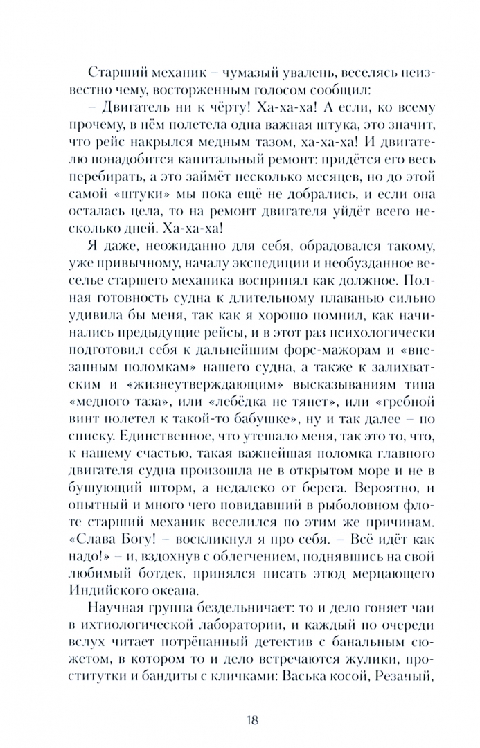 ОписаниеМыс Доброй Надежды - романтический образ, преследовавший автора этой книги с самого детства. В погоне за своей мечтой он отправляется в полугодовалую морскую экспедицию на научно-поисковом судне в юго-восточную часть Атлантического океана.Читателю этой книги предстоит путешествие по бескрайнему Индийскому океану, преодоление одного из опаснейших для морского судоходства районов "ревущих сороковых" широт, заход в загадочный Пуэнт-Нуар и, наконец, встреча с экзотическим островом Маврикий.Романтика экспедиции сопровождается трудностями повседневной жизни экипажа в замкнутом пространстве небольшого судна. Многомесячное плаванье, бесконечные штормы, тяжёлая работа сутками напролёт, скудная пища и всевозможные происшествия - всё это участники экспедиции преодолевают мужественно, не теряя человеческого достоинства и спасительного чувства юмора.Мыс Доброй Надежды - романтический образ, преследовавший автора этой книги с самого детства. В погоне за своей мечтой он отправляется в полугодовалую морскую экспедицию на научно-поисковом судне в юго-восточную часть Атлантического океана.Читателю этой книги предстоит путешествие по бескрайнему Индийскому океану, преодоление одного из опаснейших для морского судоходства районов "ревущих сороковых" широт, заход в загадочный Пуэнт-Нуар и, наконец, встреча с экзотическим островом Маврикий.Романтика экспедиции сопровождается трудностями повседневной жизни экипажа в замкнутом пространстве небольшого судна. Многомесячное плаванье, бесконечные штормы, тяжёлая работа сутками напролёт, скудная пища и всевозможные происшествия - всё это участники экспедиции преодолевают мужественно, не теряя человеческого достоинства и спасительного чувства юмора.