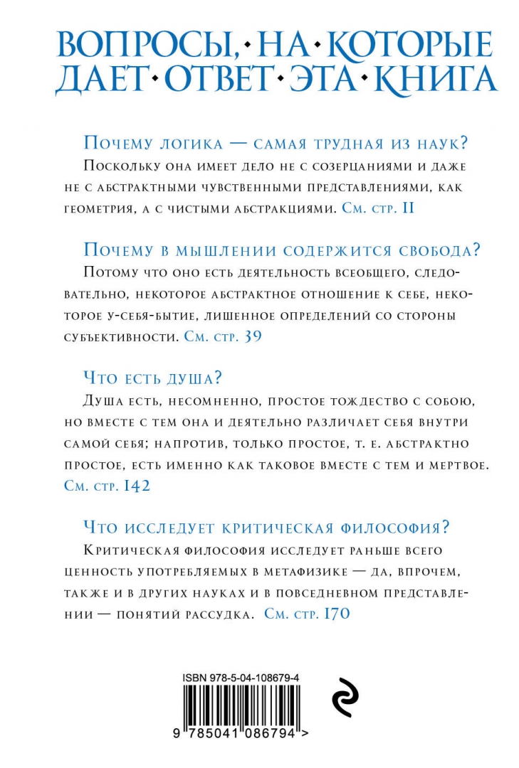 Описание"Наука логики" - одна из самых известных работ Гегеля. Он считал, что логика - это форма, которую принимает наука о мышлении в ее предельно общем выражении, в виде, необходимом для познания себя и мира в возможно более широком понимании. Согласитесь ли вы с идеями величайшего философа-идеалиста? Придете ли к выводу, что "каждому времени - своя философия", или решите, что философия всегда находится вне времени и вне географии? Не пугайтесь сложностей на пути изучения гегелевской системы - он сам однажды заявил: "Великий человек обрекает людей на то, чтобы они его объясняли". В системе любого крупного мыслителя всегда можно найти что-то для себя - даже при категорическом несогласии с ним."Наука логики" - одна из самых известных работ Гегеля. Он считал, что логика - это форма, которую принимает наука о мышлении в ее предельно общем выражении, в виде, необходимом для познания себя и мира в возможно более широком понимании. Согласитесь ли вы с идеями величайшего философа-идеалиста? Придете ли к выводу, что "каждому времени - своя философия", или решите, что философия всегда находится вне времени и вне географии? Не пугайтесь сложностей на пути изучения гегелевской системы - он сам однажды заявил: "Великий человек обрекает людей на то, чтобы они его объясняли". В системе любого крупного мыслителя всегда можно найти что-то для себя - даже при категорическом несогласии с ним.