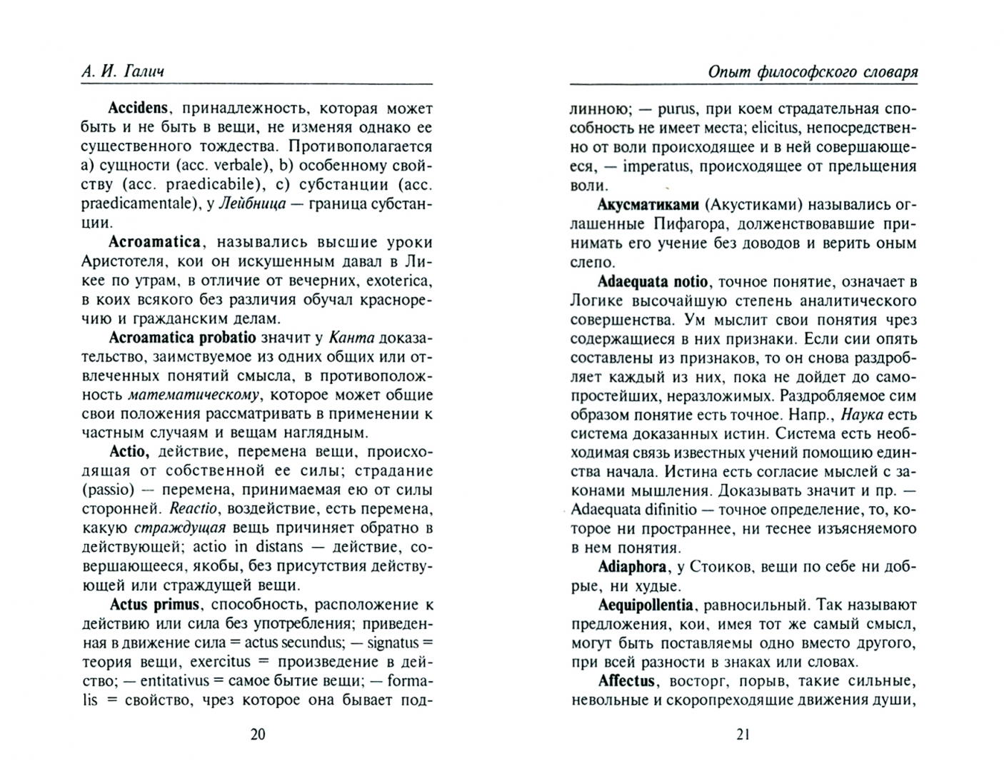 ОписаниеПервой книгой серии мы издаем "Опыт философского словаря" Александра Ивановича Галича (1783 - 1848), психолога и философа.Из вступительной статьи:"Опыт философского словаря", написанный Александром Галичем в 1818 году, был первой попыткой создать русский философский словарь. С него, пожалуй, начинало утверждаться самосознание русской философии, возвышение ее на ступень профессионального любомудрия. Обо всех наших философских словарях девятнадцатого века можно сказать, что они устарели. Это мнение бытует и среди философов. Но мнение не есть истина. А истина в том, что любой словарь живой, развивающейся науки устаревает сразу после выхода в свет. Либо наука должна умереть, создав его".Составление и статьи А.А. Шевцова.Первой книгой серии мы издаем "Опыт философского словаря" Александра Ивановича Галича (1783 - 1848), психолога и философа.Из вступительной статьи:"Опыт философского словаря", написанный Александром Галичем в 1818 году, был первой попыткой создать русский философский словарь. С него, пожалуй, начинало утверждаться самосознание русской философии, возвышение ее на ступень профессионального любомудрия. Обо всех наших философских словарях девятнадцатого века можно сказать, что они устарели. Это мнение бытует и среди философов. Но мнение не есть истина. А истина в том, что любой словарь живой, развивающейся науки устаревает сразу после выхода в свет. Либо наука должна умереть, создав его".Составление и статьи А.А. Шевцова.