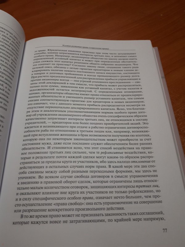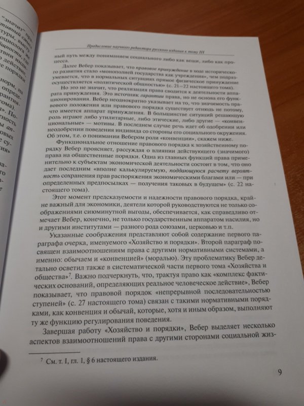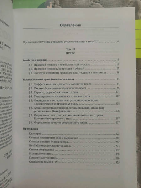 ОписаниеКнига представляет собой третий том четырехтомного издания труда Макса Вебера "Хозяйство и общество". Это первый полный перевод знаменитого сочинения на русский язык. В настоящий том включены две работы, посвященные социологии права. В первой из них, статье "Хозяйство и порядки", автор характеризует различия социологического и юридического подходов к изучению социальных процессов, описывает специфику нормативных систем (порядков) разного уровня и показывает особенности их воздействия на экономику. Во второй работе, "Условия развития права", становление и развитие правовых систем (в первую очередь трех "великих систем права": римского, английского и европейского континентального) рассматривается в контексте изменений в организации экономики и структур господства. Право выступает здесь как мощный фактор рационализации социальной жизни, в свою очередь, подвергающийся рационализирующему воздействию хозяйства и социального управления. Издание предназначено для социологов, юристов, политологов, историков, вообще для специалистов широкого спектра социальных и гуманитарных наук, а также для круга читателей, интересующихся проблемами социального и культурного развития современности.СвернутьКнига представляет собой третий том четырехтомного издания труда Макса Вебера "Хозяйство и общество". Это первый полный перевод знаменитого сочинения на русский язык. В настоящий том включены две работы, посвященные социологии права. В первой из них, статье "Хозяйство и порядки", автор характеризует различия социологического и юридического подходов к изучению социальных процессов, описывает специфику нормативных систем (порядков) разного уровня и показывает особенности их воздействия на экономику. Во второй работе, "Условия развития права", становление и развитие правовых систем (в первую очередь трех "великих систем права": римского, английского и европейского континентального) рассматривается в контексте изменений в организации экономики и структур господства. Право выступает здесь как мощный фактор рационализации социальной жизни, в свою очередь, подвергающийся рационализирующему воздействию хозяйства и социального управления. Издание предназначено для социологов, юристов, политологов, историков, вообще для специалистов широкого спектра социальных и гуманитарных наук, а также для круга читателей, интересующихся проблемами социального и культурного развития современности.СвернутьСвернуть