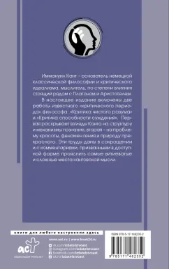 Иммануил Кант - основатель немецкой классической философии и критического идеализма, мыслитель, по степени влияния стоящий рядом с Платоном и Аристотелем. В настоящее издание включены две работы известного "критического периода" философа: "Критика чистого разума" и "Критика способности суждения". Первая раскрывает взгляды Канта на структуру и механизмы познания, вторая - на проблему красоты, феномен гения и природу прекрасного. Эти труды даны в сокращении и с комментариями, призванными в доступной форме прояснить самые витиеватые и сложные места кантовской мысли.Труды одного из самых популярных философов не только прошлых столетий, но и современности! -