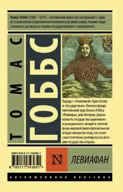 ОписаниеНаряду с "Политикой" Аристотеля и "Государством" Платона фундаментальный труд Томаса Гоббса "Левиафан, или Материя, форма и власть государства церковного и гражданского" входит в золотой фонд мировой философской мысли и будет интересен тому, кто хочет самостоятельно разбираться в истории государства и права.Наряду с "Политикой" Аристотеля и "Государством" Платона фундаментальный труд Томаса Гоббса "Левиафан, или Материя, форма и власть государства церковного и гражданского" входит в золотой фонд мировой философской мысли и будет интересен тому, кто хочет самостоятельно разбираться в истории государства и права.