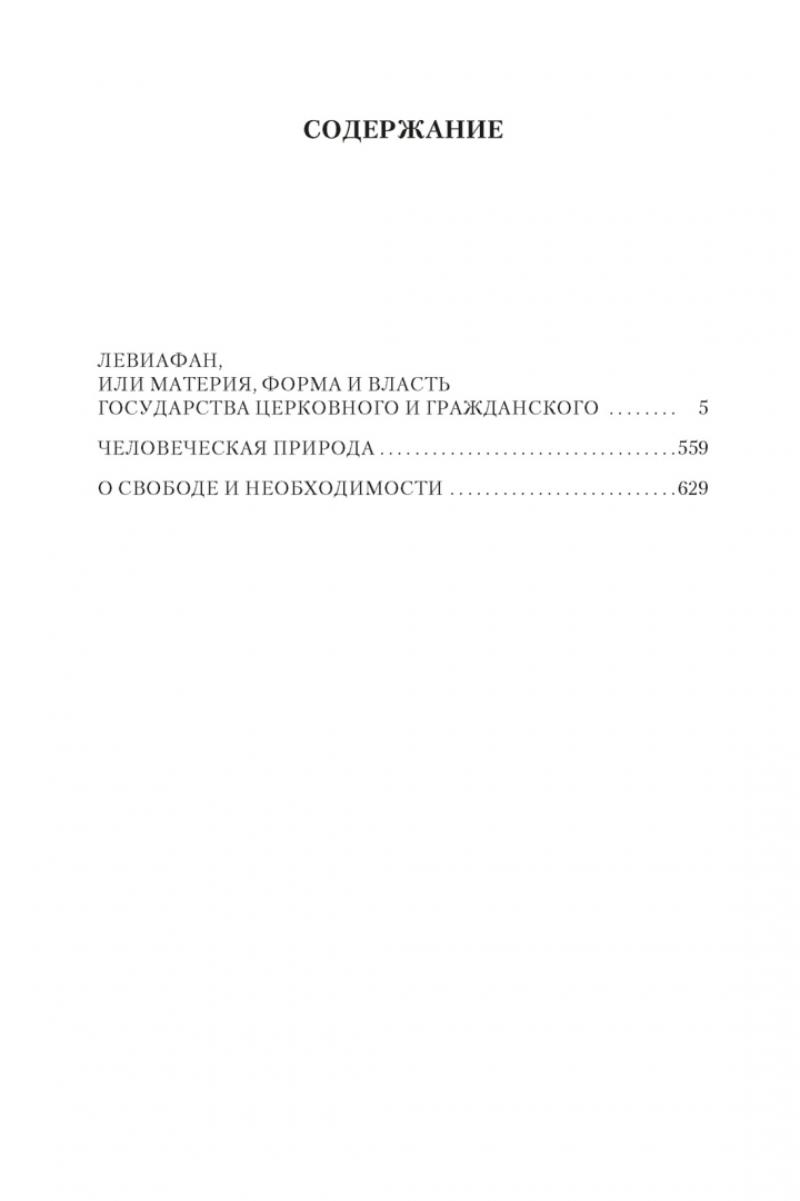 В книгу включены также произведения Гоббса «Человеческая природа» (1650) и «О свободе и необходимости» (1654).Английский философ Томас Гоббс (1588–1679), один из основателей теории общественного договора, считал, что люди ради обретения безопасности должны уступить часть своих естественных прав могучему Левиафану государства. Трактат «Левиафан», написанный в условиях Английской революции, при очевидном конфликте между законодательной и исполнительной властью (король против парламента), стал одним из самых важных исследований о теории власти и оказал колоссальное влияние на развитие культуры, философии и политического устройства современного общества.