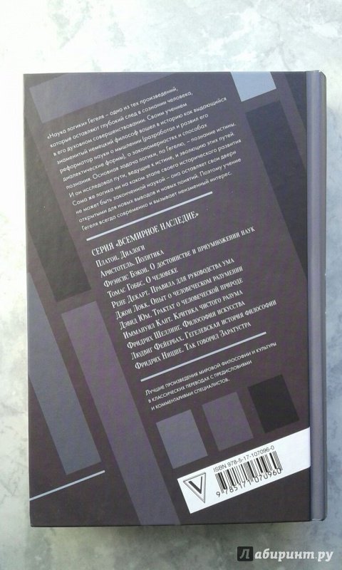 Объем, стр. 912 ISBN 978-5-17-107096-0 Автор Гегель Георг Вильгельм Фридрих, Столпнер Б. Г. Переводчик Столпнер Б. Г. Серия Всемирное наследие Минимальный возраст 12+ Год издания книги 2018 Тип обложки Твердый переплет Иллюстрации Без иллюстраций Вес, г 838г Размеры 218х145х45 мм - Отзывы