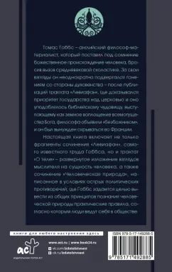 ОписаниеТомас Гоббс (1588-1679) - английский философ-материалист, который поставил под сомнение божественное происхождение человека, бросив вызов средневековой схоластике. За свои взгляды он неоднократно подвергался гонениям со стороны духовенства. О книге "Левиафан":В настоящую хрестоматию вошли - самое известное сочинение Гоббса "Левиафан", где доказывается приоритет государства над церковью, и оно уподобляется библейскому чудовищу, выступающему как земное воплощение всемогущества Бога, трактат "О теле" - развернутое изложение взглядов мыслителя на сущность человека, и сочинение "Человеческая природа", написанное в условиях острых политических противоречий, где Гоббс задается целью вывести из общих принципов познания человеческой природы практические правила, согласно которым люди ведут себя в обществе. Фишки книги "Левиафан":- Изложение фундаментальных понятий философии простым языком;- Издание содержит инфографику и иллюстрации;- Все тексты снабжены комментариями специалиста;Для кого эта книга:- Для всех тех, кто любит историю, культуру и философию;- Для студентов исторических и философских факультетов;Книга познакомит читателей с основными идеями английского мыслителя Томаса Гоббса, которые получили широкое распространение в таких дисциплинах, как политология, этика, физика, теология и других.