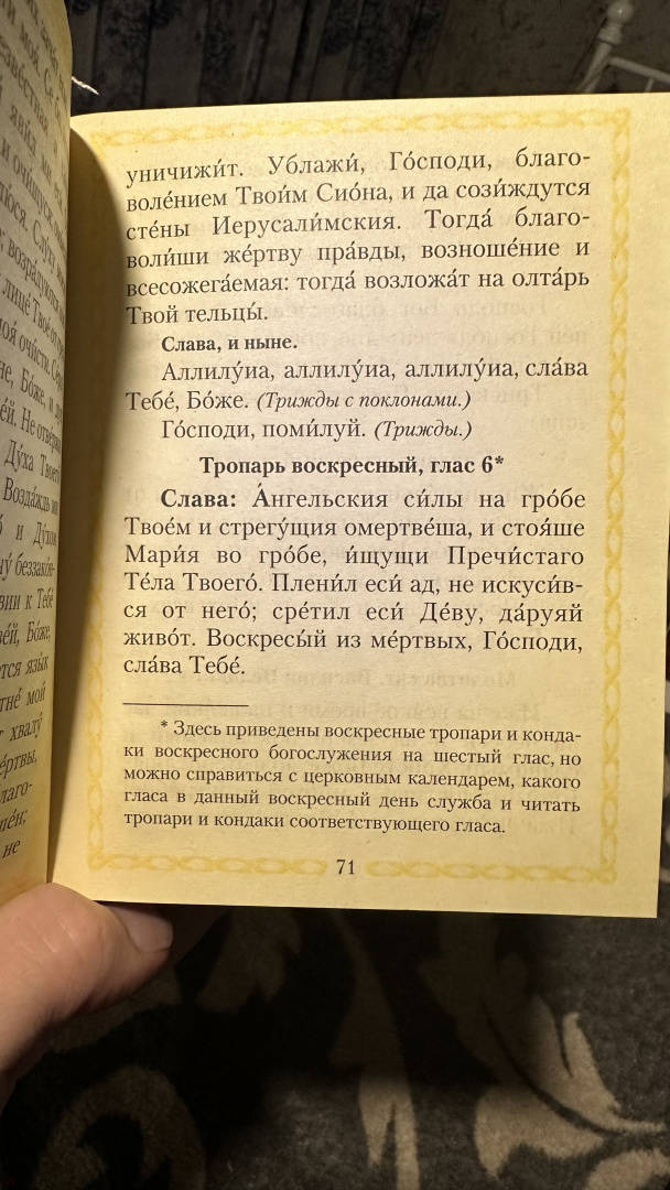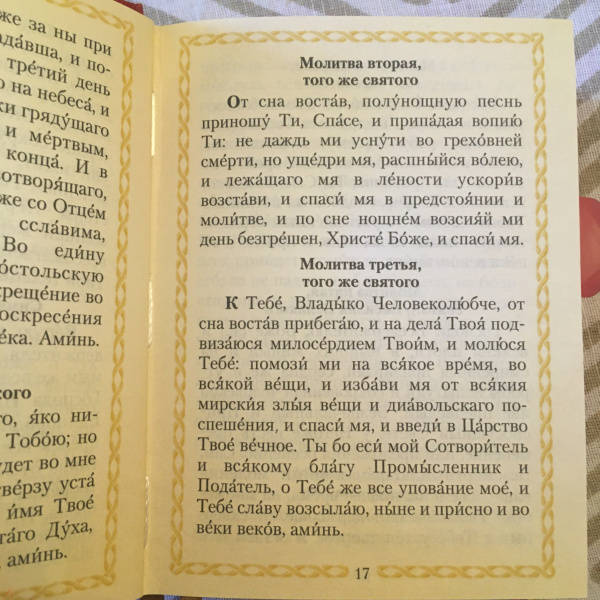 ОписаниеСвятитель Московский Филарет (Дроздов, † 1867), оставивший нам богатое духовное наследие, писал: "Домашнюю молитву Господь примет вместо церковного богослужения, когда в сем участвовать нет удобства". Уважительные причины для непосещения храма в воскресенье или на праздник могут быть самые разные: болезнь, приковавшая нас самих или близких к постели; пребывание на даче, в командировке, на отдыхе в отдаленном или вовсе лишенном православного храма месте; дальняя и долгая поездка; любая иная непредвиденная ситуация. Составители данного молитвослова, предусмотрев это, включили в него изобразительны, чтение которых может в какой-то мере заменить присутствие православных христиан на литургии, не претендуя на полноту и всеохватность, молитвослов "Всегда с собой" тем не менее содержит помимо утреннего и вечернего правила, а также правила ко Святому Причащению, такие важные разделы, как молитвы, каноны и псалмы на каждый день седмицы, Богородичное правило, молитвы за близких и на всякое прошение души.Составители надеются, что желающих молиться, где бы они ни находились, не смутит объем молитвослова, который заменит собой множество тонких книжиц. Ведь не останавливает христианина при сборах в дорогу немалый объем таких необходимых нам книг, как святое Евангелие и Псалтирь.Будем помнить, что молитва, по словам того же святителя Филарета, "есть главная нить, которой разрешается весь узел духовных тайн, и ключ, которым отверзаются все сокровища благодати".СвернутьСвятитель Московский Филарет (Дроздов, † 1867), оставивший нам богатое духовное наследие, писал: "Домашнюю молитву Господь примет вместо церковного богослужения, когда в сем участвовать нет удобства". Уважительные причины для непосещения храма в воскресенье или на праздник могут быть самые разные: болезнь, приковавшая нас самих или близких к постели; пребывание на даче, в командировке, на отдыхе в отдаленном или вовсе лишенном православного храма месте; дальняя и долгая поездка; любая иная непредвиденная ситуация. Составители данного молитвослова, предусмотрев это, включили в него изобразительны, чтение которых может в какой-то мере заменить присутствие православных христиан на литургии, не претендуя на полноту и всеохватность, молитвослов "Всегда с собой" тем не менее содержит помимо утреннего и вечернего правила, а также правила ко Святому Причащению, такие важные разделы, как молитвы, каноны и псалмы на каждый день седмицы, Богородичное правило, молитвы за близких и на всякое прошение души.Составители надеются, что желающих молиться, где бы они ни находились, не смутит объем молитвослова, который заменит собой множество тонких книжиц. Ведь не останавливает христианина при сборах в дорогу немалый объем таких необходимых нам книг, как святое Евангелие и Псалтирь.Будем помнить, что молитва, по словам того же святителя Филарета, "есть главная нить, которой разрешается весь узел духовных тайн, и ключ, которым отверзаются все сокровища благодати".СвернутьСвернуть