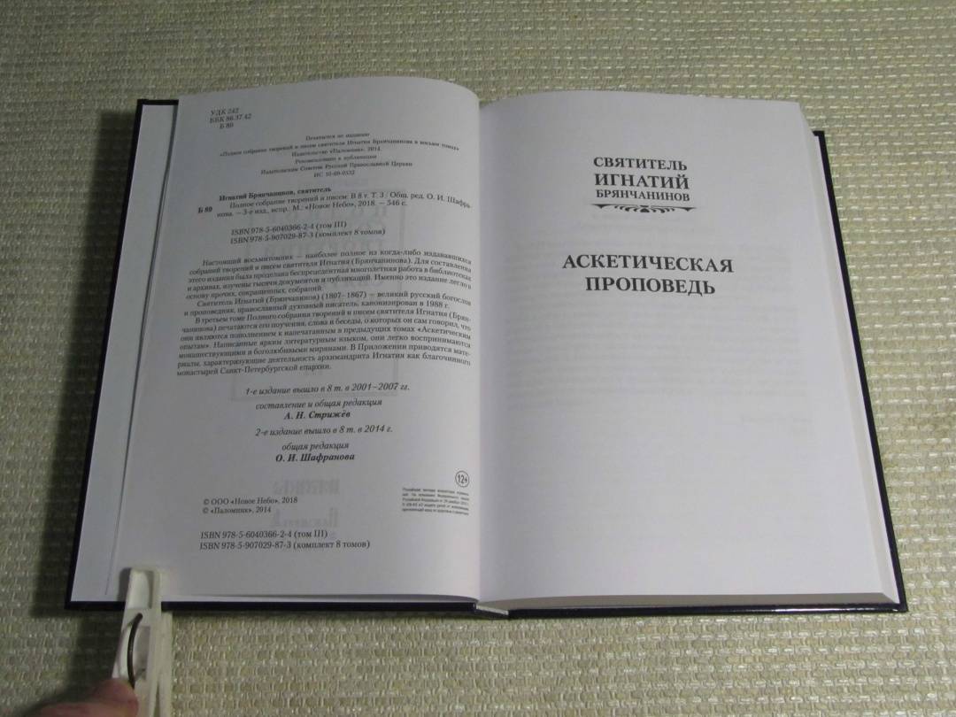 Объем, стр. 546 ISBN 978-5-6040366-2-4 Автор Святитель Игнатий (Брянчанинов) Минимальный возраст 12+ Год издания книги 2018 Тип обложки Твердый переплет Иллюстрации Без иллюстраций Вес, г 672г Размеры 217х155х28 мм - Отзывы