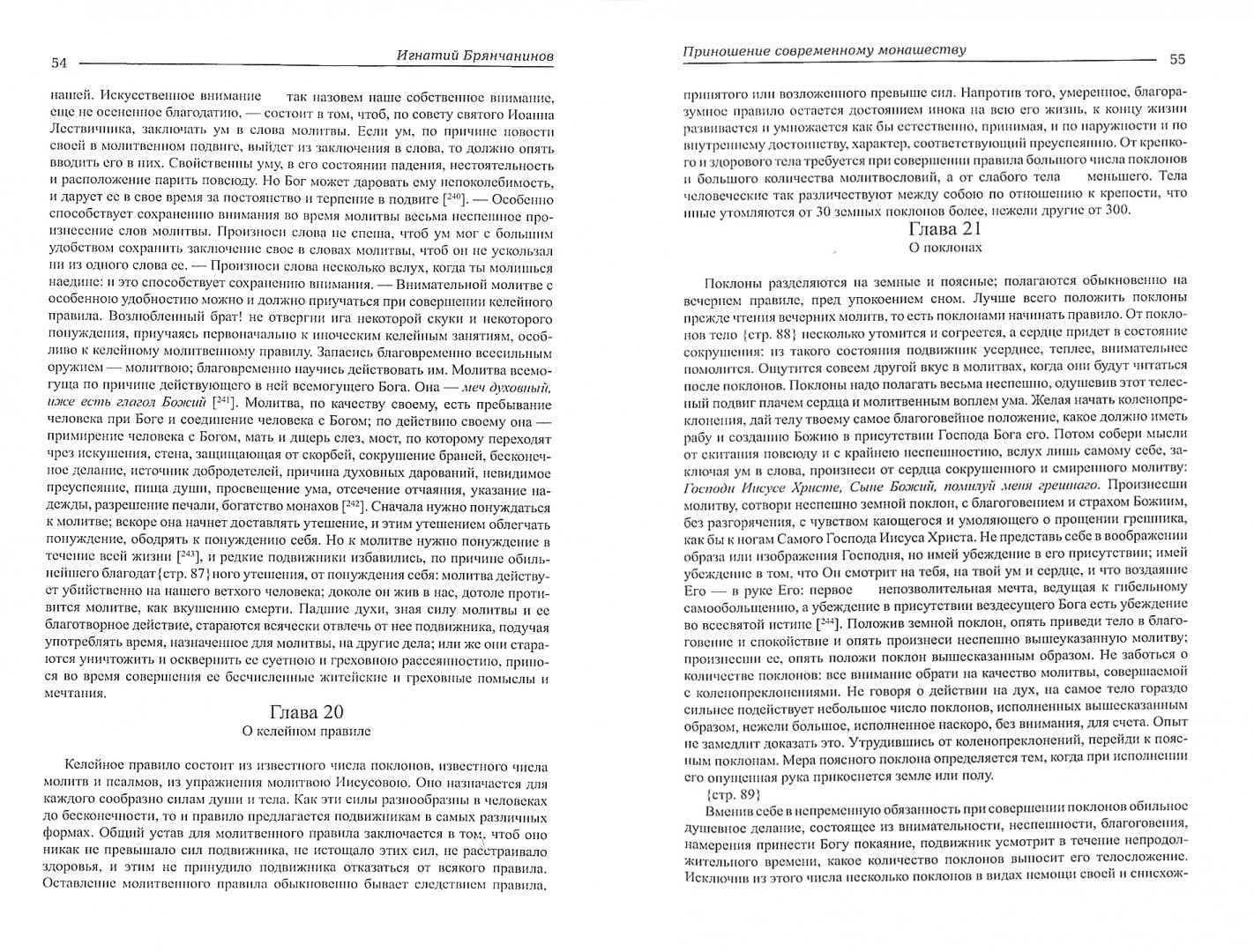 ОписаниеСвятитель Игнатий (1807-1867), в миру Дмитрий Александрович Брянчанинов, - известный русский подвижник и писатель, чьё литературное дарование отмечали Пушкин, Крылов, Батюшков. Произведения Святителя Игнатия нашли отклик в сердцах многих благочестивых людей и воистину представляют собой духовную сокровищницу Русской православной Церкви."Приношение современному монашеству" - великое творение Святителя Игнатия, представляющее собой душеполезное и "назидательное чтение". В нём содержатся советы и наставления о том, как правильно и безопасно строить христианам свой духовный путь, преодолевать испытания, неизбежно на нём возникающие, а также правила наружного поведения монашествующих.Святитель Игнатий (1807-1867), в миру Дмитрий Александрович Брянчанинов, - известный русский подвижник и писатель, чьё литературное дарование отмечали Пушкин, Крылов, Батюшков. Произведения Святителя Игнатия нашли отклик в сердцах многих благочестивых людей и воистину представляют собой духовную сокровищницу Русской православной Церкви."Приношение современному монашеству" - великое творение Святителя Игнатия, представляющее собой душеполезное и "назидательное чтение". В нём содержатся советы и наставления о том, как правильно и безопасно строить христианам свой духовный путь, преодолевать испытания, неизбежно на нём возникающие, а также правила наружного поведения монашествующих.