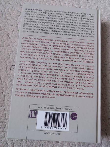 ОписаниеСпособность поддерживать пристальное памятование - навык, который можно освоить, и он необычайно полезен в жизни. Эта книга излагает теорию и применение метода, который Будда называл прямым путем к просветлению, - простые, но мощные практические приемы, позволяющие развивать памятование, они позволят любому человеку, независимо от того, относит он себя к той или иной традиции или вере или нет, достичь подлинного внутреннего благополучия и свободы от страданий.Ален Уоллес, опираясь на свой опыт монаха, ученого и созерцателя, предлагает нам насыщенный синтез восточной и западной традиций, а также развитую систему пошаговых медитаций, следуя которой на практике, читатель сможет сформулировать и осознать некоторые наиболее фундаментальные вопросы и подвергнуть их созерцательному изучению. Уоллес подчеркивает: личный практический поиск необходим. Цель этих методов - исцелить ум и устранить препятствия на пути к прямому постижению глубинной природы человеческого опыта."Внимаем пристально" методически продолжает объяснение теории и практики медитаций, предложенное в книге А. Уоллеса "Революция внимания".СвернутьСпособность поддерживать пристальное памятование - навык, который можно освоить, и он необычайно полезен в жизни. Эта книга излагает теорию и применение метода, который Будда называл прямым путем к просветлению, - простые, но мощные практические приемы, позволяющие развивать памятование, они позволят любому человеку, независимо от того, относит он себя к той или иной традиции или вере или нет, достичь подлинного внутреннего благополучия и свободы от страданий.Ален Уоллес, опираясь на свой опыт монаха, ученого и созерцателя, предлагает нам насыщенный синтез восточной и западной традиций, а также развитую систему пошаговых медитаций, следуя которой на практике, читатель сможет сформулировать и осознать некоторые наиболее фундаментальные вопросы и подвергнуть их созерцательному изучению. Уоллес подчеркивает: личный практический поиск необходим. Цель этих методов - исцелить ум и устранить препятствия на пути к прямому постижению глубинной природы человеческого опыта."Внимаем пристально" методически продолжает объяснение теории и практики медитаций, предложенное в книге А. Уоллеса "Революция внимания".СвернутьСвернуть