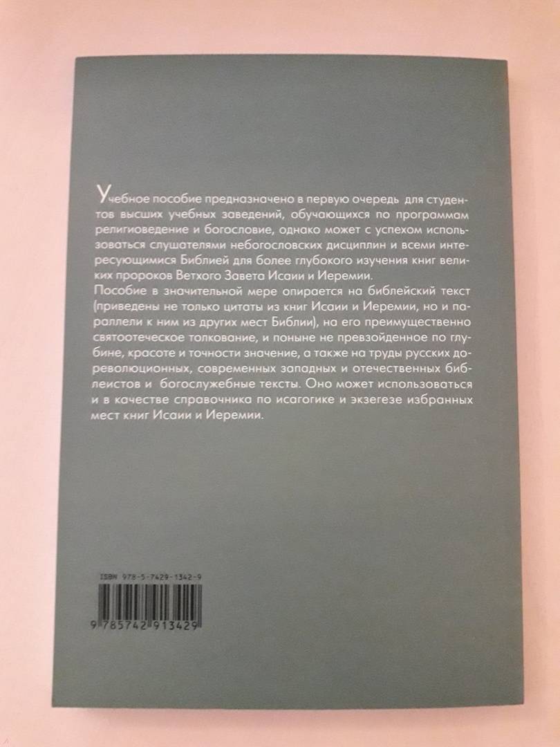 ОписаниеПредлагаемое учебное пособие предназначено в первую очередь для студентов-богословов ПСТГУ, однако может с успехом использоваться учащимися небогословских факультетов и просто интересующимися Библией и библейской тематикой как для первоначального знакомства с книгами великих пророков Ветхого Завета Исаии и Иеремии, так и для более углубленного их изучения. Пособие в значительной мере опирается на библейский текст (подробные цитаты из книг Исаии и Иеремии, параллели к ним из других мест Библии), на его преимущественно святоотеческое толкование, и поныне не превзойденное по глубине, красоте и точности, на труды русских дореволюционных, современных западных и отечественных библеистов, а также богослужебные тексты. Кроме того, данное пособие может использоваться и в качестве справочника по исагогике и экзегезе избранных мест книг Исаии и Иеремии.Предлагаемое учебное пособие предназначено в первую очередь для студентов-богословов ПСТГУ, однако может с успехом использоваться учащимися небогословских факультетов и просто интересующимися Библией и библейской тематикой как для первоначального знакомства с книгами великих пророков Ветхого Завета Исаии и Иеремии, так и для более углубленного их изучения. Пособие в значительной мере опирается на библейский текст (подробные цитаты из книг Исаии и Иеремии, параллели к ним из других мест Библии), на его преимущественно святоотеческое толкование, и поныне не превзойденное по глубине, красоте и точности, на труды русских дореволюционных, современных западных и отечественных библеистов, а также богослужебные тексты. Кроме того, данное пособие может использоваться и в качестве справочника по исагогике и экзегезе избранных мест книг Исаии и Иеремии.