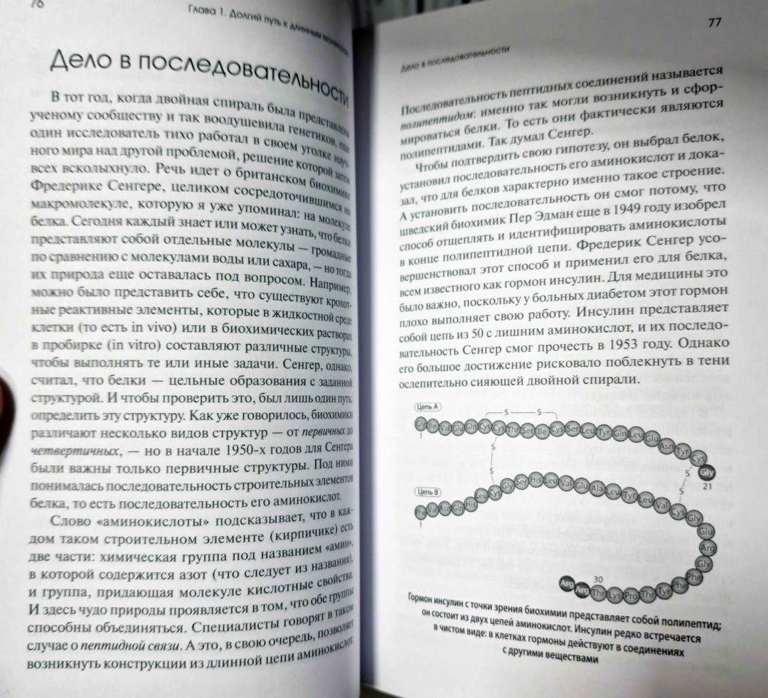 ОписаниеГенетика - одна из самых полезных для человечества наук. Она помогает раскрыть древние тайны истории и географии (например, были ли неандертальцы нашими предками и, если да, какие их свойства мы в себе храним?). Но главное, чего ждут от генетики все - и обычные люди, и правительства, и сами генные инженеры - решения практических задач, в первую очередь здоровья: когда найдут лекарство от рака, и научатся ли лечить другие генетические заболевания, возможно ли предотвращать проявления болезни Альцгеймера и даже сохранять людям молодость. С открытием могущественного механизма коррекции генов CRISPR эти ожидания скоро, возможно, станут реальностью.Но все же умение вмешиваться в гены не дает (пока) ученым возможности раскрыть тайну генов. Что такое здоровый человек, может ли коррекция генов сделать человека идеальным. Возможно ли вообще создание идеального человека и общества, и какова этическая ответственность науки за возможные последствия вмешательства генной инженерии в жизнь - это не менее важный круг вопросов, которые автор не оставляет без внимания.СвернутьГенетика - одна из самых полезных для человечества наук. Она помогает раскрыть древние тайны истории и географии (например, были ли неандертальцы нашими предками и, если да, какие их свойства мы в себе храним?). Но главное, чего ждут от генетики все - и обычные люди, и правительства, и сами генные инженеры - решения практических задач, в первую очередь здоровья: когда найдут лекарство от рака, и научатся ли лечить другие генетические заболевания, возможно ли предотвращать проявления болезни Альцгеймера и даже сохранять людям молодость. С открытием могущественного механизма коррекции генов CRISPR эти ожидания скоро, возможно, станут реальностью.Но все же умение вмешиваться в гены не дает (пока) ученым возможности раскрыть тайну генов. Что такое здоровый человек, может ли коррекция генов сделать человека идеальным. Возможно ли вообще создание идеального человека и общества, и какова этическая ответственность науки за возможные последствия вмешательства генной инженерии в жизнь - это не менее важный круг вопросов, которые автор не оставляет без внимания.СвернутьСвернуть