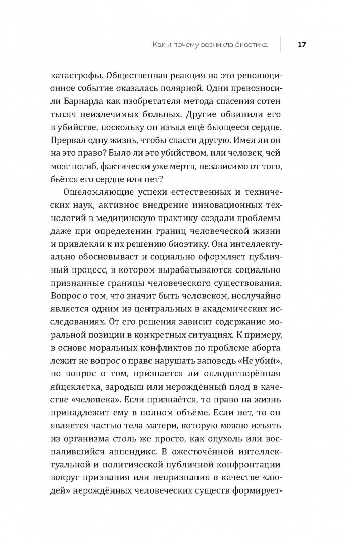 ОписаниеУже довольно давно все самое важное и интересное в науке происходит на стыке разных дисциплин: биоэтика, например, находится где-то на пересечении естественных и гуманитарных наук. "Мостом в будущее" называют это учение, основанное в 1970 году Ван Ренсселером Поттером.Биоэтика - связующее звено между биомедицинскими фактами и моральными ценностями. В центре внимания ее - жизнь как высшая ценность человеческого мира. Всегда ли мы осознаем это? А ведь на каждом шагу можем столкнуться со сложными вопросами, ответы на которые должен найти каждый для себя. Эти вопросы могут сопровождать человека от рождения ("суррогатное материнство", судьба "лишних" эмбрионов при ЭКО) до смерти (эвтаназия или проблема смертной казни). Развитие цивилизации и новых технологий расширяет круг непростых для человека тем. С какого момента эмбрион можно считать человеком? Кто может стать донором для пересадки органов? Можно ли вмешиваться в процессы старения? Допустимо ли манипулирование сознанием людей в политических и иных целях? А применение НЛП для достижения успеха? Что произойдет в сфере права, когда люди станут бессмертными?..Эта книга описывает наиболее острые проблемы, вызывающие дискуссии в обществе, и поможет определиться со своим отношением к ним.СвернутьУже довольно давно все самое важное и интересное в науке происходит на стыке разных дисциплин: биоэтика, например, находится где-то на пересечении естественных и гуманитарных наук. "Мостом в будущее" называют это учение, основанное в 1970 году Ван Ренсселером Поттером.Биоэтика - связующее звено между биомедицинскими фактами и моральными ценностями. В центре внимания ее - жизнь как высшая ценность человеческого мира. Всегда ли мы осознаем это? А ведь на каждом шагу можем столкнуться со сложными вопросами, ответы на которые должен найти каждый для себя. Эти вопросы могут сопровождать человека от рождения ("суррогатное материнство", судьба "лишних" эмбрионов при ЭКО) до смерти (эвтаназия или проблема смертной казни). Развитие цивилизации и новых технологий расширяет круг непростых для человека тем. С какого момента эмбрион можно считать человеком? Кто может стать донором для пересадки органов? Можно ли вмешиваться в процессы старения? Допустимо ли манипулирование сознанием людей в политических и иных целях? А применение НЛП для достижения успеха? Что произойдет в сфере права, когда люди станут бессмертными?..Эта книга описывает наиболее острые проблемы, вызывающие дискуссии в обществе, и поможет определиться со своим отношением к ним.СвернутьСвернуть