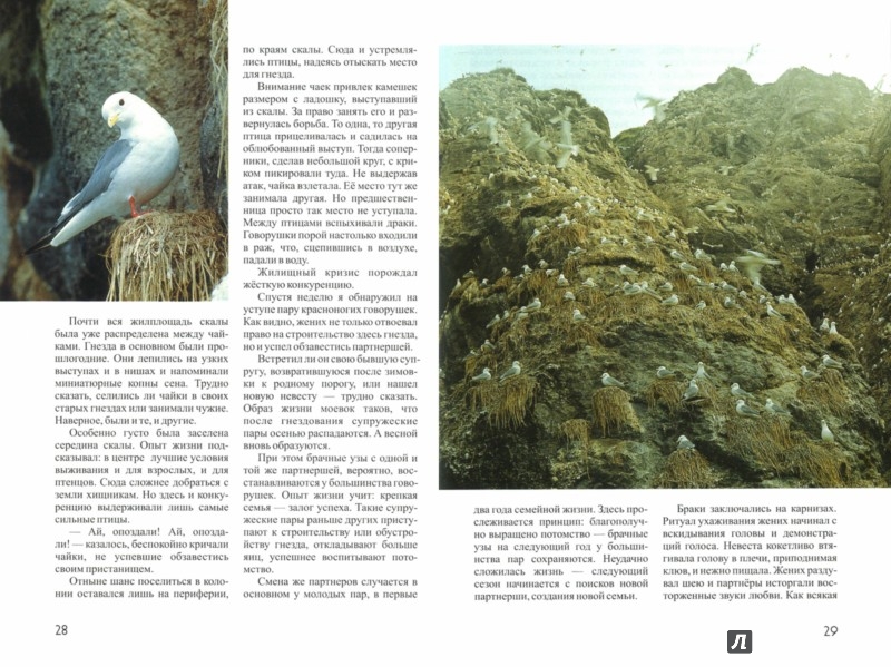 ОписаниеКнига Михаила Жилина вводит читателей в шумный и беспокойный прекрасный и загадочный мир "птичьих базаров". Вместе с автором можно совершить путешествие на острова в северной части Тихого океана, узнать много любопытного о поведении и образе жизни морских птиц, образующих в период гнездовья массовые колониальные поселения на скалах. Документальные рассказы иллюстрированы цветными и черно-белыми фотоснимками автора. Книга представляет интерес для школьников, студентов и всех любителей природы.Книга Михаила Жилина вводит читателей в шумный и беспокойный прекрасный и загадочный мир "птичьих базаров". Вместе с автором можно совершить путешествие на острова в северной части Тихого океана, узнать много любопытного о поведении и образе жизни морских птиц, образующих в период гнездовья массовые колониальные поселения на скалах. Документальные рассказы иллюстрированы цветными и черно-белыми фотоснимками автора. Книга представляет интерес для школьников, студентов и всех любителей природы.