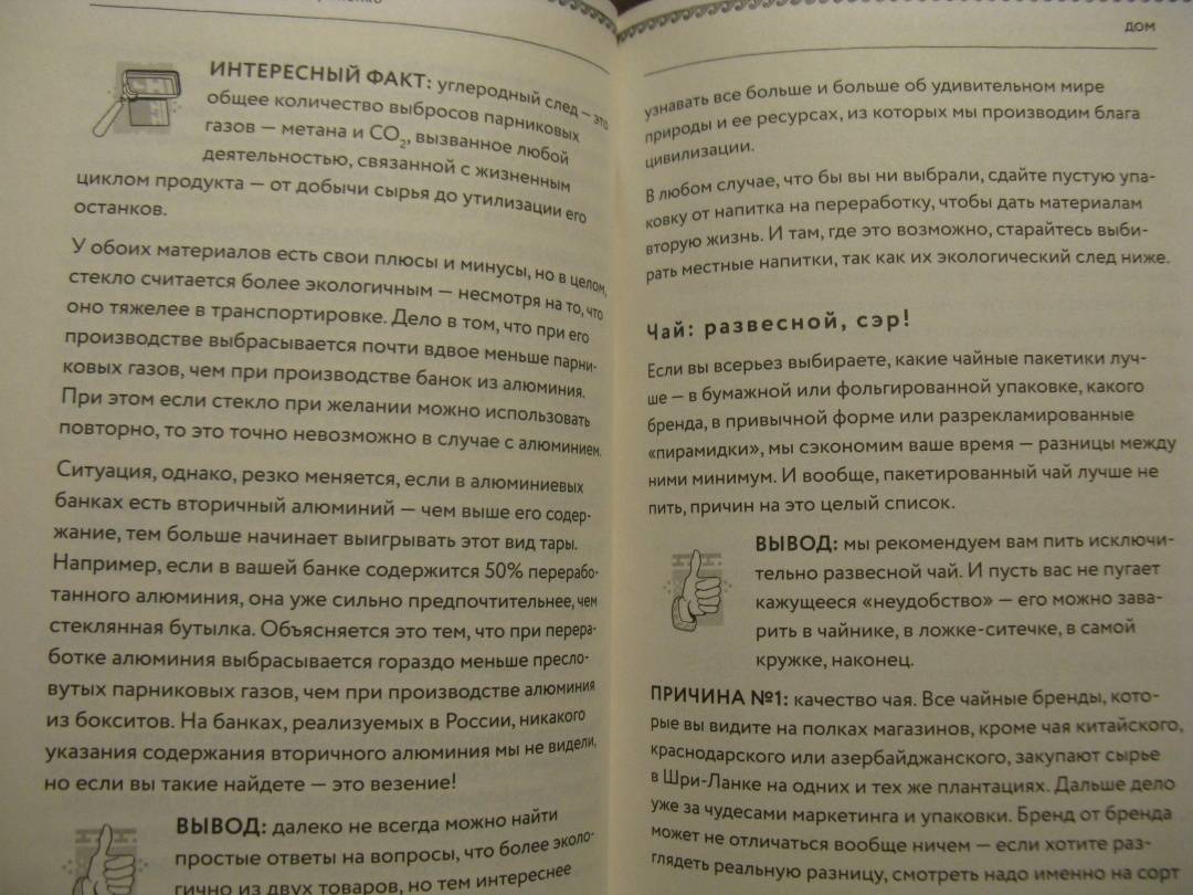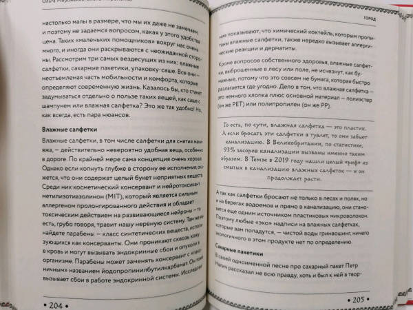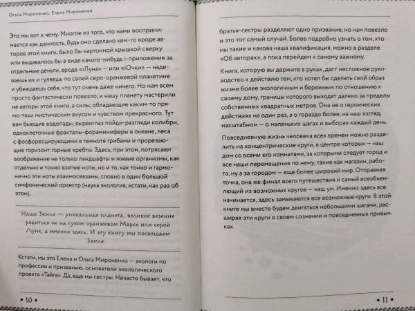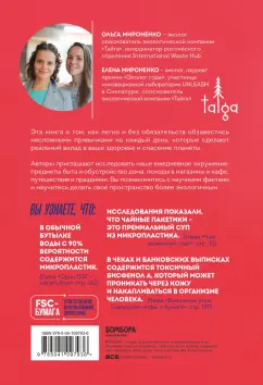 ОписаниеИзменить мир и создать его таким, каким вы мечтаете видеть его через десятки лет, вполне возможно! Перепотребление ресурсов, нещадное загрязнение планеты, исчезающие виды флоры и фауны, ослабленный иммунитет так или иначе заставляют нас пересмотреть представления о собственной осознанности. Книга от известных экологов Ольги и Елены Мироненко даст несложное руководство к действию тем, кто хотел бы сделать свой образ жизни более экологичным и бережным по отношению к своему дому, границы которого выходят далеко за пределы собственных квадратных метров. Она не о героических действиях на один раз, а о гораздо более масштабном - о маленьких шагах и выборах каждый день.Вы узнаете:- чем вредны чайные пакетики для организма; - почему стоит отказаться от кассовых чеков и банковских выписок;- полезно ли пить воду из пластиковых бутылок. Исследуйте вместе с авторами свое ежедневное окружение: предметы быта и обстановку дома, походы в магазины и кафе, путешествия и праздники, - и научитесь делать свое пространство более экологичным."Ваша инициатива может быть абсолютно любой - от похода в магазин со своим шоппером до предотвращения угрозы добычи полезных ископаемых на морском дне, от экологических проблем в пределах вашего подъезда до глобальных процессов на планете. Важен каждый маленький шаг, который в ваших силах сделать, - этими маленькими шажками вы сможете проделать колоссальный путь".Ольга и Елена Мироненко - экологи по образованию и по призванию. Работают в области обращения с отходами, ведут экологический проект "Тайга", созданный ими в 2015 году для развития экологической культуры в стране. В рамках проекта авторы ведут информативный блог, работают с бизнес-кейсами - по упаковке, материалам, корпоративной сувенирной продукции, проводят по-настоящему "зеленые" мероприятия и научно-популярные экспедиции, создают образовательный контент по этим темам и многое другое.СвернутьИзменить мир и создать его таким, каким вы мечтаете видеть его через десятки лет, вполне возможно! Перепотребление ресурсов, нещадное загрязнение планеты, исчезающие виды флоры и фауны, ослабленный иммунитет так или иначе заставляют нас пересмотреть представления о собственной осознанности. Книга от известных экологов Ольги и Елены Мироненко даст несложное руководство к действию тем, кто хотел бы сделать свой образ жизни более экологичным и бережным по отношению к своему дому, границы которого выходят далеко за пределы собственных квадратных метров. Она не о героических действиях на один раз, а о гораздо более масштабном - о маленьких шагах и выборах каждый день.Вы узнаете:- чем вредны чайные пакетики для организма; - почему стоит отказаться от кассовых чеков и банковских выписок;- полезно ли пить воду из пластиковых бутылок. Исследуйте вместе с авторами свое ежедневное окружение: предметы быта и обстановку дома, походы в магазины и кафе, путешествия и праздники, - и научитесь делать свое пространство более экологичным."Ваша инициатива может быть абсолютно любой - от похода в магазин со своим шоппером до предотвращения угрозы добычи полезных ископаемых на морском дне, от экологических проблем в пределах вашего подъезда до глобальных процессов на планете. Важен каждый маленький шаг, который в ваших силах сделать, - этими маленькими шажками вы смож