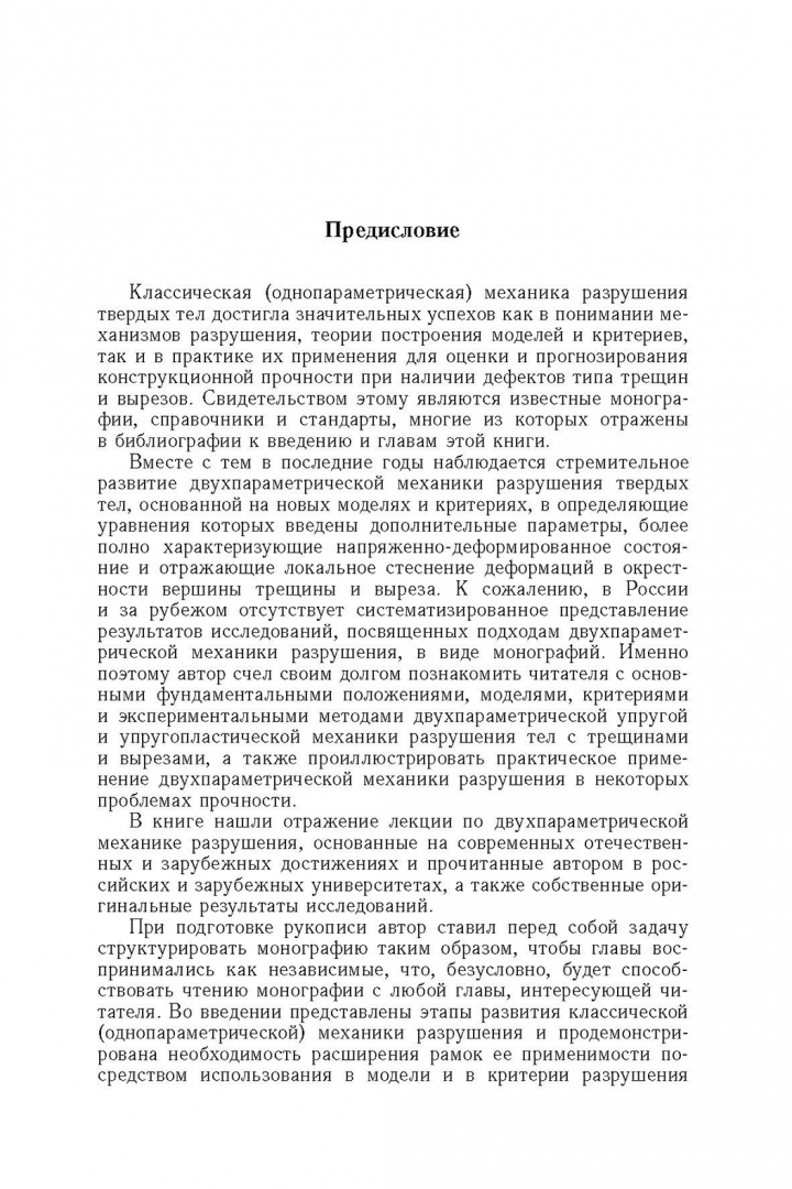 ОписаниеПриведены основные положения, модели, критерии и экспериментальные методы двухпараметрической упругой и упругопластической механики разрушения тел с трещинами и вырезами. Особое внимание уделено современным представлениям об асимптотическом поле напряжений, деформаций и перемещений в окрестности вершины трещины (выреза). Приведены результаты трехмерного численного исследования параметров локального стеснения деформаций в задачах механики разрушения. Модели двухпараметрической механики разрушения адаптированы к решению проблем усталостного и динамического распространения трещин, эволюции параметров механики разрушения в неоднородных полях остаточных напряжений и повреждений, торможения трещин, поиска траектории трещины. Сформулированы и проиллюстрированы основные положения и методы детерминированных и вероятностных расчетов на прочность по критериям двухпараметрической механики разрушения. Студентам старших курсов, магистрам и аспирантам технических университетов, а также научным и инженерно-техническим работникам, интересующимся современными проблемами прочности и разрушения твердых тел, безопасности, живучести и ресурса технических систем.СвернутьПриведены основные положения, модели, критерии и экспериментальные методы двухпараметрической упругой и упругопластической механики разрушения тел с трещинами и вырезами. Особое внимание уделено современным представлениям об асимптотическом поле напряжений, деформаций и перемещений в окрестности вершины трещины (выреза). Приведены результаты трехмерного численного исследования параметров локального стеснения деформаций в задачах механики разрушения. Модели двухпараметрической механики разрушения адаптированы к решению проблем усталостного и динамического распространения трещин, эволюции параметров механики разрушения в неоднородных полях остаточных напряжений и повреждений, торможения трещин, поиска траектории трещины. Сформулированы и проиллюстрированы основные положения и методы детерминированных и вероятностных расчетов на прочность по критериям двухпараметрической механики разрушения. Студентам старших курсов, магистрам и аспирантам технических университетов, а также научным и инженерно-техническим работникам, интересующимся современными проблемами прочности и разрушения твердых тел, безопасности, живучести и ресурса технических систем.СвернутьСвернуть