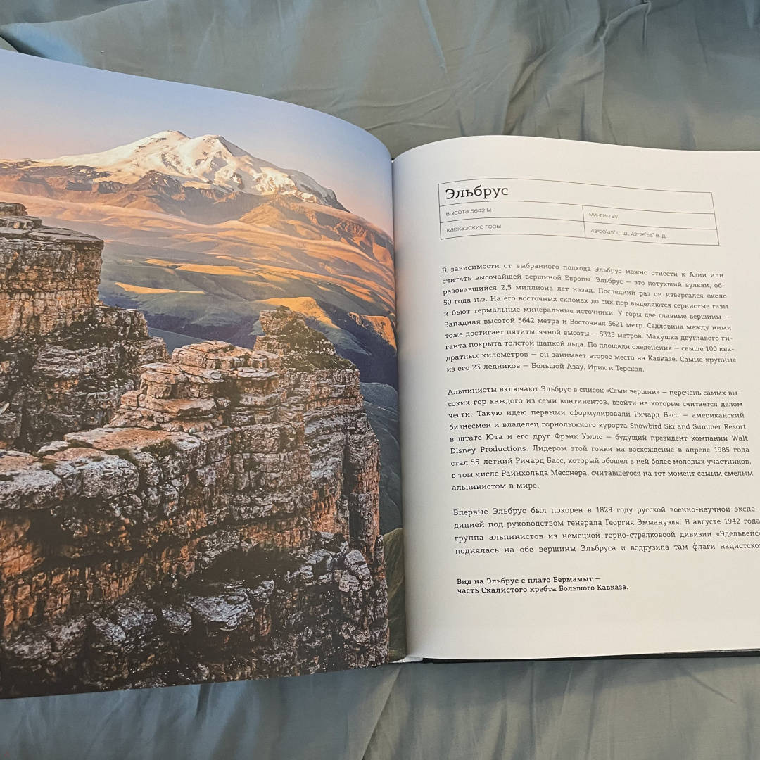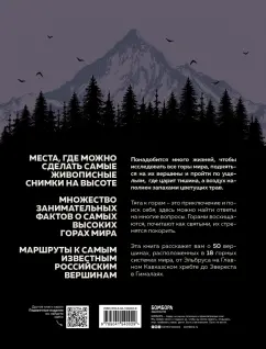 ОписаниеЧеловека всегда влекло в горы. Ближе к небу, к головокружительным видам, к снегам и цветочным полям. Туда, где царит тишина, прячутся глубокие опасные ущелья и холод затуманивает разум. Горы — это философия. Это суровая природа и испытание. Горами восхищаются и почитают как святыни, совершая паломничество к вершине, которая может забрать жизнь. Благодаря этой книге вы узнаете: • О самых известных горах разных уголков планеты. • О пугающей опасности и невероятной красоте высоты. • Об отважных альпинистах, оставшихся в горах навечно. 50 вершин, 18 горных систем, от Эльбруса на Главном Кавказском хребте до Эвереста в Гималаях. И самые невероятные открытия в книге «Вершины мира»! Это уникальное подарочное издание позволит вам насладиться потрясающими фотографиями, узнать множество интересных фактов и даже выбрать собственный маршрут к одной из российских вершин.Человека всегда влекло в горы. Ближе к небу, к головокружительным видам, к снегам и цветочным полям. Туда, где царит тишина, прячутся глубокие опасные ущелья и холод затуманивает разум. Горы — это философия. Это суровая природа и испытание. Горами восхищаются и почитают как святыни, совершая паломничество к вершине, которая может забрать жизнь. Благодаря этой книге вы узнаете: • О самых известных горах разных уголков планеты. • О пугающей опасности и невероятной красоте высоты. • Об отважных альпинистах, оставшихся в горах навечно. 50 вершин, 18 горных систем, от Эльбруса на Главном Кавказском хребте до Эвереста в Гималаях. И самые невероятные открытия в книге «Вершины мира»! Это уникальное подарочное издание позволит вам насладиться потрясающими фотографиями, узнать множество интересных фактов и даже выбрать собственный маршрут к одной из российских вершин.