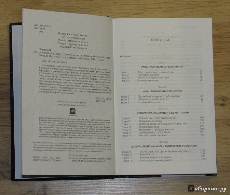 ОписаниеЧеловечество стоит на пороге нового понимания мира и своего места во Вселенной - считает авторитетный американский ученый, профессор физики Гарвардского университета Лиза Рэндалл, и приглашает нас в увлекательное путешествие по просторам истории научных открытий. Особое место в книге отведено новейшим и самым значимым разработкам в физике элементарных частиц; обстоятельствам создания и принципам действия Большого адронного коллайдера, к которому приковано внимание всего мира; дискуссии между конкурирующими точками зрения на место человека в универсуме. Содержательный и вместе с тем доходчивый рассказ знакомит читателя со свежими научными идеями и достижениями, шаг за шагом приближающими человека к пониманию устройства мироздания.2-е издание.Человечество стоит на пороге нового понимания мира и своего места во Вселенной - считает авторитетный американский ученый, профессор физики Гарвардского университета Лиза Рэндалл, и приглашает нас в увлекательное путешествие по просторам истории научных открытий. Особое место в книге отведено новейшим и самым значимым разработкам в физике элементарных частиц; обстоятельствам создания и принципам действия Большого адронного коллайдера, к которому приковано внимание всего мира; дискуссии между конкурирующими точками зрения на место человека в универсуме. Содержательный и вместе с тем доходчивый рассказ знакомит читателя со свежими научными идеями и достижениями, шаг за шагом приближающими человека к пониманию устройства мироздания.2-е издание.