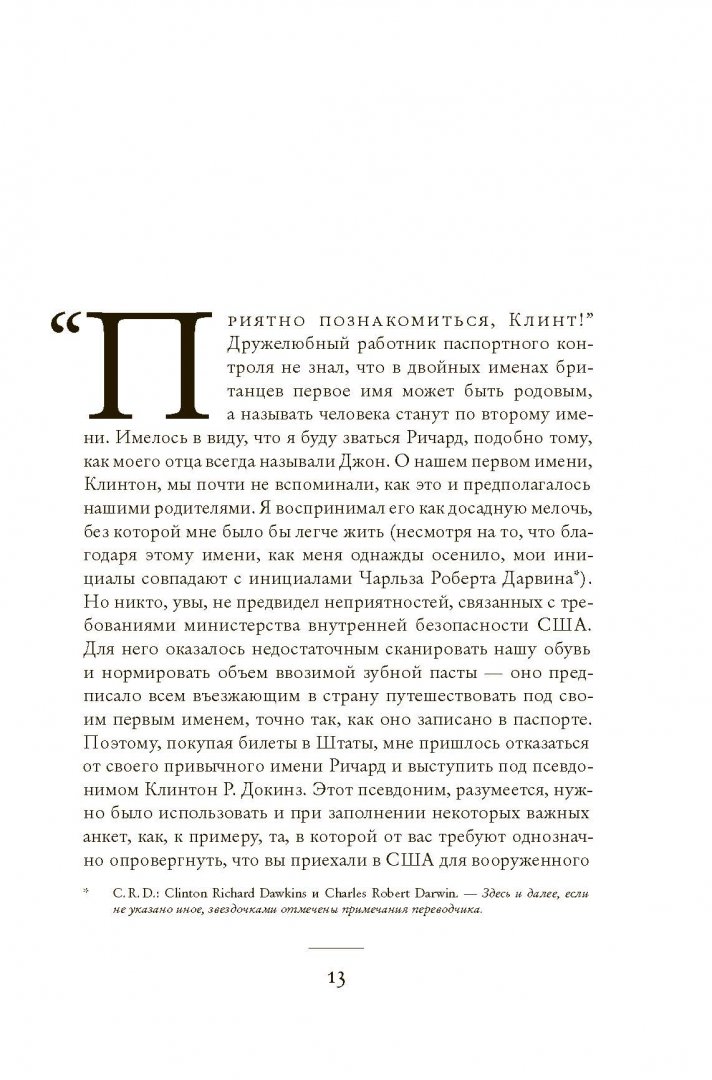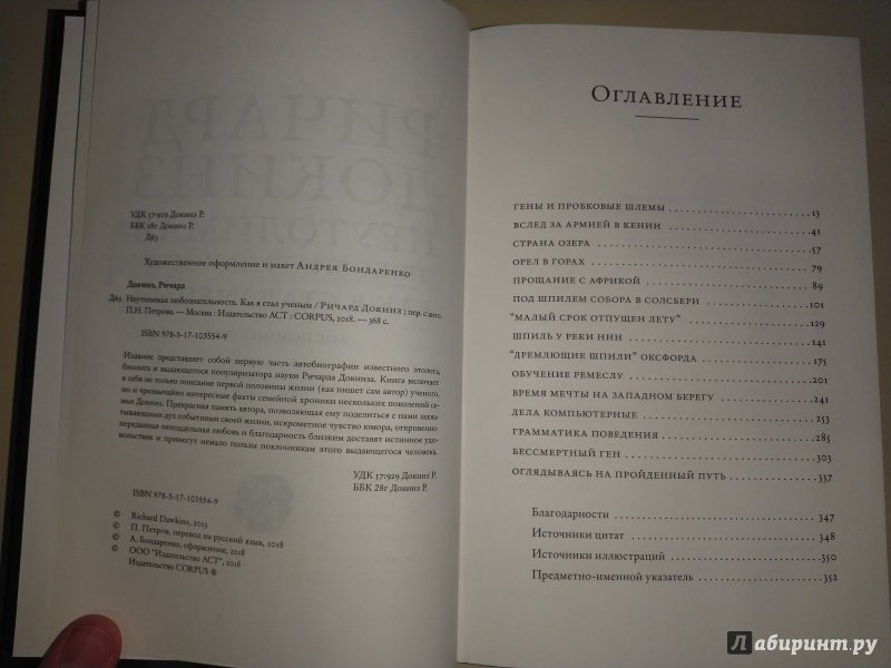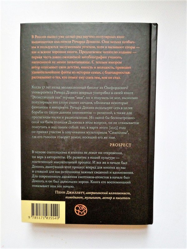 ОписаниеИздание представляет собой первую часть автобиографии известного этолога, биолога и выдающегося популяризатора науки Ричарда Докинза. Книга включает в себя не только описание первой половины жизни (как пишет сам автор) ученого, но и чрезвычайно интересные факты семейной хроники нескольких поколений семьи Докинз. Прекрасная память автора, позволяющая ему поделиться с нами захватывающими дух событиями своей жизни, искрометное чувство юмора, откровенно переданная неподдельная любовь и благодарность близким доставят истинное удовольствие и принесут немало пользы поклонникам этого выдающегося человека.Издание представляет собой первую часть автобиографии известного этолога, биолога и выдающегося популяризатора науки Ричарда Докинза. Книга включает в себя не только описание первой половины жизни (как пишет сам автор) ученого, но и чрезвычайно интересные факты семейной хроники нескольких поколений семьи Докинз. Прекрасная память автора, позволяющая ему поделиться с нами захватывающими дух событиями своей жизни, искрометное чувство юмора, откровенно переданная неподдельная любовь и благодарность близким доставят истинное удовольствие и принесут немало пользы поклонникам этого выдающегося человека.
