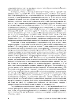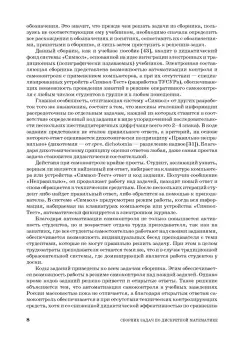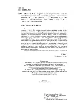 ОписаниеВ сборнике отражено содержание пяти разделов дискретной математики, таких как теория множеств, булева алгебра логики, теория конечных автоматов, комбинаторика и теория графов, изложенных в учебном пособии Ю. П. Шевелева «Дискретная математика» (СПб.: Изд-во «Лань», 2008). Для данного сборника это пособие является базовым. Однако базовым может быть и любое другое учебное пособие, где соответствующие темы рассматриваются достаточно полно. В сборнике 14 глав. Каждая глава состоит из нескольких тем (от 2 до 8). Общее число тем во всех 14 главах равно 54. По каждой теме приведено 50 дидактически эквивалентных заданий. Даны образцы их выполнения. Пятидесяти вариантов заданий достаточно для того, чтобы проводить аудиторные занятия в группах и выдавать индивидуальные задания для самостоятельной работы во внеаудиторное время. Всего в сборнике 7450 задач и 112 вопросов. Предусмотрено два вида контроля: автоматизированный и при помощи открытых ответов (они приведены ко всем задачам и вопросам).Для студентов технических специальностей колледжей и техникумов.СвернутьВ сборнике отражено содержание пяти разделов дискретной математики, таких как теория множеств, булева алгебра логики, теория конечных автоматов, комбинаторика и теория графов, изложенных в учебном пособии Ю. П. Шевелева «Дискретная математика» (СПб.: Изд-во «Лань», 2008). Для данного сборника это пособие является базовым. Однако базовым может быть и любое другое учебное пособие, где соответствующие темы рассматриваются достаточно полно. В сборнике 14 глав. Каждая глава состоит из нескольких тем (от 2 до 8). Общее число тем во всех 14 главах равно 54. По каждой теме приведено 50 дидактически эквивалентных заданий. Даны образцы их выполнения. Пятидесяти вариантов заданий достаточно для того, чтобы проводить аудиторные занятия в группах и выдавать индивидуальные задания для самостоятельной работы во внеаудиторное время. Всего в сборнике 7450 задач и 112 вопросов. Предусмотрено два вида контроля: автоматизированный и при помощи открытых ответов (они приведены ко всем задачам и вопросам).Для студентов технических специальностей колледжей и техникумов.СвернутьСвернуть