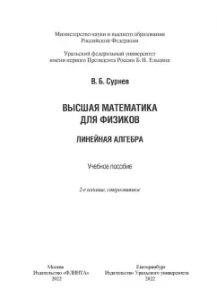 Виктор Сурнев: Высшая математика для физиков. Линейная алгебра. Учебное пособие