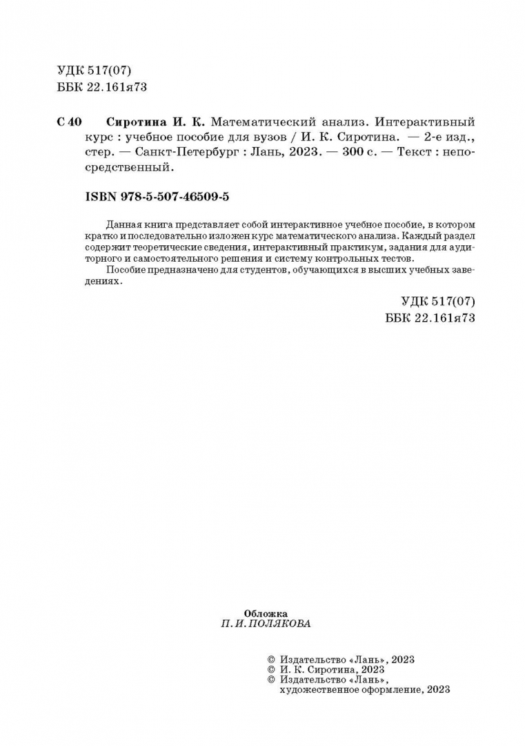 Ирина Сиротина: Математический анализ. Интерактивный курс. Учебное пособие для вузов