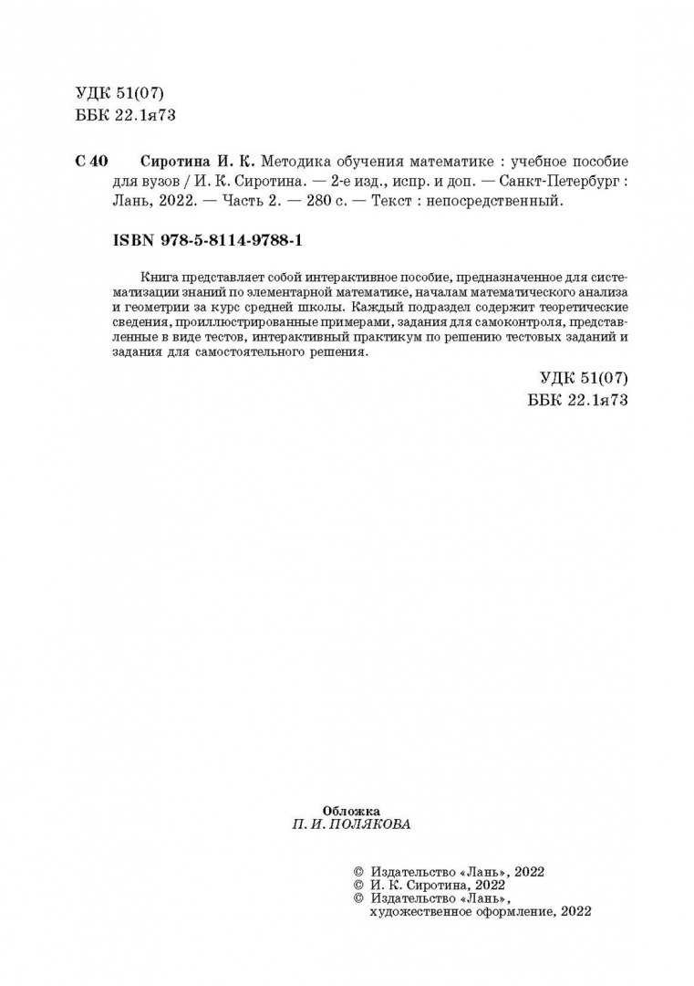 ----Ирина Сиротина: Методика обучения математике. Часть 2. Учебное пособие для вузовЭЗОТЕРИКА. ПАРАПСИХОЛОГИЯ. ТАЙНЫ.БИОГРАФИИ и МЕМУАРЫИСТОРИЯ и ПОЛИТИКАФЭНТЕЗИ и ФАНТАСТИКАМЕДИЦИНА и ПСИХОЛОГИЯ ЭКОНОМИКА. БИЗНЕС. МАРКЕТИНГПУТЕШЕСТВИЕ и ДОСУГКНИГИ НА ДРУГИХ ЯЗЫКАХКНИГИ ДЛЯ ДЕТЕЙУЧЕБНАЯ, МЕТОДИЧЕСКАЯ ЛИТЕРАТУРА и СЛОВАРИТЕХНИКА и НАУКАХУДОЖЕСТВЕННАЯ ЛИТЕРАТУРАРЕЛИГИЯ и ФИЛОСОФИЯПЕРИОДИЧЕСКИЕ ИЗДАНИЯМЕДИЦИНА и ПСИХОЛОГИЯНАШ ИЗРАИЛЬ