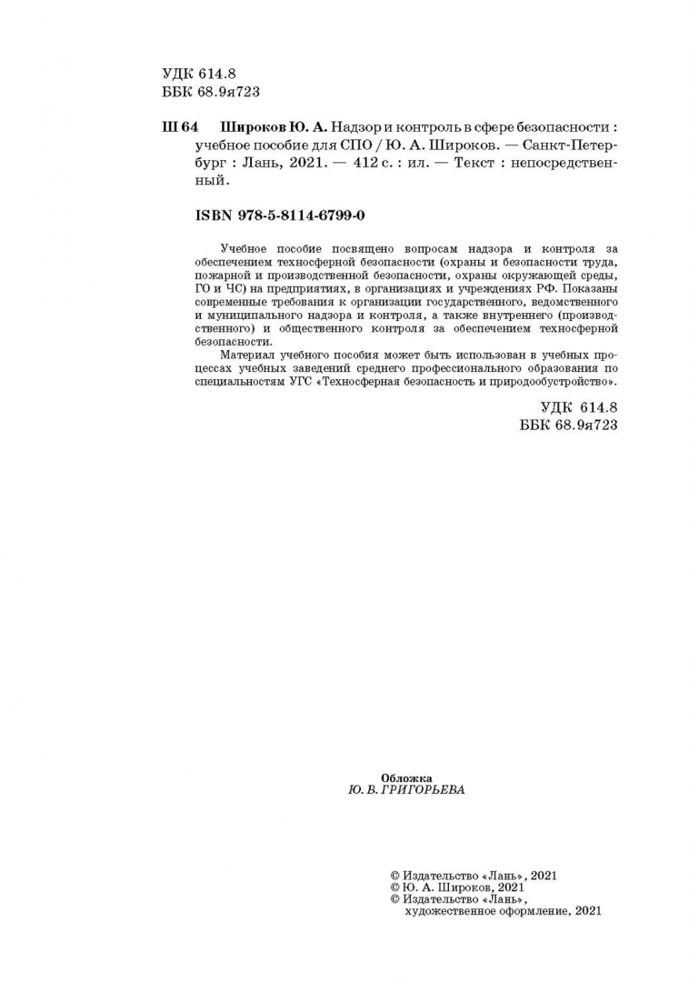 Объем, стр. 412 ISBN 978-5-8114-6799-0 Автор Широков Юрий Александрович Серия Техника безопасности Год издания книги 2021 Тип обложки Твердый переплет Иллюстрации Без иллюстраций Вес, г 662г Размеры 243х170х22 мм - Отзывы