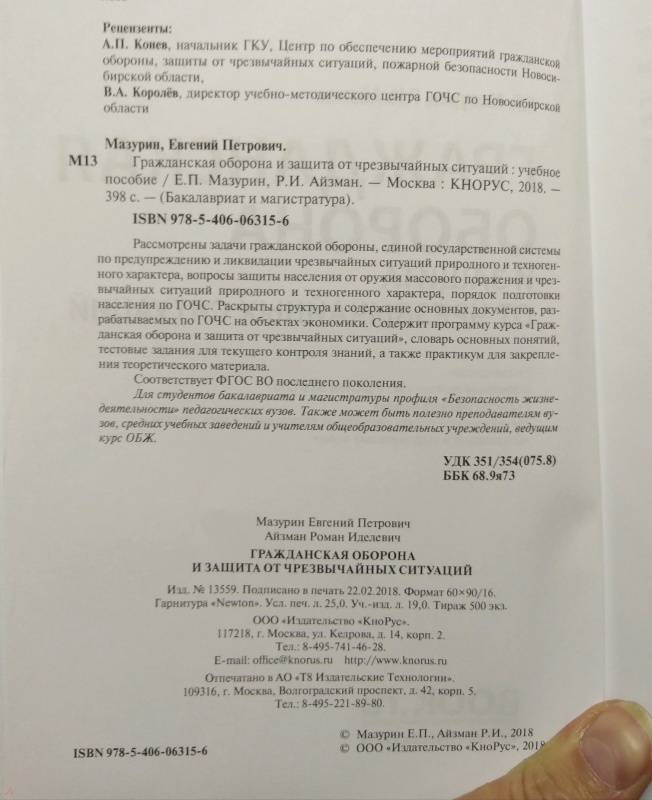 Мазурин, Айзман: Гражданская оборона и защита от чрезвычайных ситуаций. Учебное пособие для бакалавров
