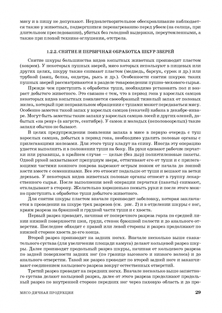 ОписаниеВ пособии изложены особенности состава, свойств мяса промысловых зверей и птиц, технология разделки, первичной обработки тушек, мяса, субпродуктов животных, временного хранения продукции в полевых и стационарных условиях, технология консервирования продукции холодом, солью, копчением, заливкой жиром, маринованием, органолептических и лабораторных методов исследования степени свежести и требования к качеству продукции. Рассматриваются особенности состава, свойств, использования, условий произрастания, технологии и сроков сбора, первичной обработки, хранения, консервирования и требований к качеству разных видов, групп грибов, орехов, ягод и других сочных плодов. Показаны особенности состава, свойств, технологии обработки и хранения лекарственно-технического сырья промысловых зверей и птиц: панты оленей и сайгаков, желчь и жир млекопитающих, бобровая и кабарожья струя, щетина, рога и копыта, перо-пуховое и растительное сырье.Пособие может быть использовано студентами колледжей и техникумов, обучающихся по специальностям «Технология производства и переработки сельскохозяйственной продукции», «Охотоведение и звероводство», «Ветеринария»; «Технология консервов и пищеконцентратов», «Технология мяса и мясных продуктов», «Товароведение и экспертиза качества потребительских товаров», также практическими работниками охотничьего хозяйства, природоохранных организаций, охотниками и любителями природы.СвернутьВ пособии изложены особенности состава, свойств мяса промысловых зверей и птиц, технология разделки, первичной обработки тушек, мяса, субпродуктов животных, временного хранения продукции в полевых и стационарных условиях, технология консервирования продукции холодом, солью, копчением, заливкой жиром, маринованием, органолептических и лабораторных методов исследования степени свежести и требования к качеству продукции. Рассматриваются особенности состава, свойств, использования, условий произрастания, технологии и сроков сбора, первичной обработки, хранения, консервирования и требований к качеству разных видов, групп грибов, орехов, ягод и других сочных плодов. Показаны особенности состава, свойств, технологии обработки и хранения лекарственно-технического сырья промысловых зверей и птиц: панты оленей и сайгаков, желчь и жир млекопитающих, бобровая и кабарожья струя, щетина, рога и копыта, перо-пуховое и растительное сырье.Пособие может быть использовано студентами колледжей и техникумов, обучающихся по специальностям «Технология производства и переработки сельскохозяйственной продукции», «Охотоведение и звероводство», «Ветеринария»; «Технология консервов и пищеконцентратов», «Технология мяса и мясных продуктов», «Товароведение и экспертиза качества потребительских товаров», также практическими работниками охотничьего хозяйства, природоохранных организаций, охотниками и любителями природы.СвернутьСвернуть