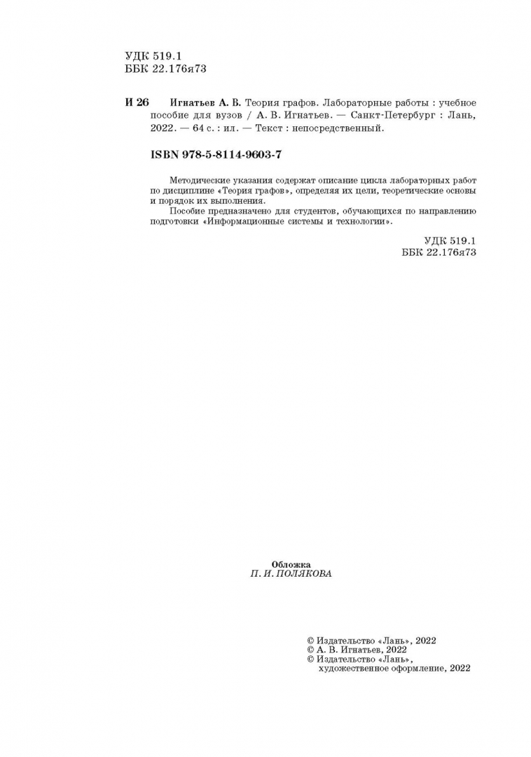 Объем, стр. 64 ISBN 978-5-8114-9603-7 Автор Игнатьев Александр Владимирович Серия Математика Язык Русский Год издания книги 2022 Тип обложки Мягкий переплет Иллюстрации Без иллюстраций Вес, г 104г Размеры 235х165х4 мм - Отзывы