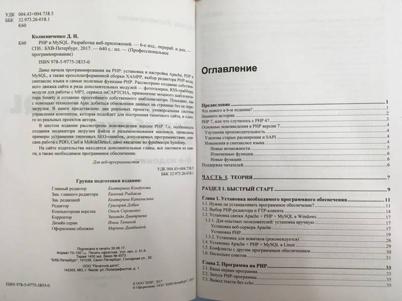 ОписаниеДаны начала программирования на PHP: установка и настройка Apache, PHP и MySQL, а также кроссплатформенной сборки XAMPP, выбор редактора PHP-кода, синтаксис языка и самые полезные функции PHP. Рассмотрено создание собственного движка сайта и ряда дополнительных модулей - фотогалереи, RSS-граббера, модуля для работы с MP3, сервиса reCAPTCHA, применение мощного шаблонизатора Smarty и создание простейшего собственного шаблонизатора. Показано, как с помощью технологии Ajax добиться обновления данных на странице без ее перезагрузки. В книге представлено два реальных проекта: универсальная система управления контентом, которая подойдет для построения типичного сайта, и одного из реальных проектов автора. В шестом издании рассмотрены нововведения версии PHP 7.х, особенности создания индикатора загрузки файла и разыменовывания массивов, приведены примеры устранения типичных SEO-ошибок, допускаемых программистами, описана работа с PDO, Curl и MobileDetect, дано введение во фреймворк Symfony.На сайте издательства находятся дополнительные главы, все листинги из книги, а также необходимое программное обеспечение.Для веб-программистов.6-е издание, переработанное и дополненноеСвернутьДаны начала программирования на PHP: установка и настройка Apache, PHP и MySQL, а также кроссплатформенной сборки XAMPP, выбор редактора PHP-кода, синтаксис языка и самые полезные функции PHP. Рассмотрено создание собственного движка сайта и ряда дополнительных модулей - фотогалереи, RSS-граббера, модуля для работы с MP3, сервиса reCAPTCHA, применение мощного шаблонизатора Smarty и создание простейшего собственного шаблонизатора. Показано, как с помощью технологии Ajax добиться обновления данных на странице без ее перезагрузки. В книге представлено два реальных проекта: универсальная система управления контентом, которая подойдет для построения типичного сайта, и одного из реальных проектов автора. В шестом издании рассмотрены нововведения версии PHP 7.х, особенности создания индикатора загрузки файла и разыменовывания массивов, приведены примеры устранения типичных SEO-ошибок, допускаемых программистами, описана работа с PDO, Curl и MobileDetect, дано введение во фреймворк Symfony.На сайте издательства находятся дополнительные главы, все листинги из книги, а также необходимое программное обеспечение.Для веб-программистов.6-е издание, переработанное и дополненноеСвернутьСвернуть