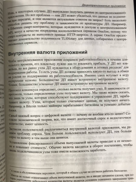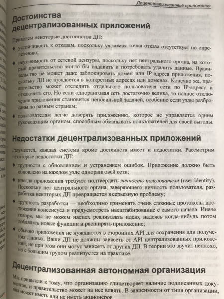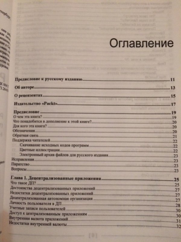 ОписаниеРассказано о том, что такое децентрализованные приложения и как они работают. Рассмотрены принципы работы платформы Ethereum. Показано, как писать смарт-контракты и использовать интерактивную консоль Geth для размещения и передачи транзакций. Описана библиотека web3.js, ее импорт, подключение к Geth и использование в среде Node.js или на стороне клиента. Продемонстрировано, как создать сервис кошелька и управлять им, как компилировать смарт-контракты и развертывать их при помощи web3.js и EthereumJS. Описаны язык программирования Solidity и среда разработки Truffle. Приведено руководство по разработке собственного блокчейна и децентрализованных приложений корпоративного уровня.Рассказано о том, что такое децентрализованные приложения и как они работают. Рассмотрены принципы работы платформы Ethereum. Показано, как писать смарт-контракты и использовать интерактивную консоль Geth для размещения и передачи транзакций. Описана библиотека web3.js, ее импорт, подключение к Geth и использование в среде Node.js или на стороне клиента. Продемонстрировано, как создать сервис кошелька и управлять им, как компилировать смарт-контракты и развертывать их при помощи web3.js и EthereumJS. Описаны язык программирования Solidity и среда разработки Truffle. Приведено руководство по разработке собственного блокчейна и децентрализованных приложений корпоративного уровня.