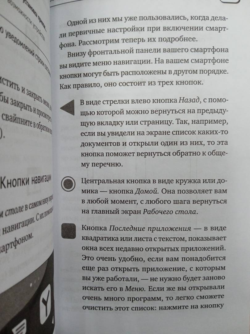 ОписаниеОбновленная и самая актуальная версия популярного самоучителя!Эта книга - для вас, если вы хотите легко и быстро научиться пользоваться смартфоном.С новейшим самоучителем Ивана Жукова вам не придется теряться в догадках: "Куда здесь нажать?" Никаких заумных терминов - все написано очень простым языком. А подробные описания и сопровождающие их картинки не оставят шансов сделать что-то не так. Из этой книги вы узнаете, как:- выбрать смартфон;- бесплатно звонить в любую точку мира и общаться по видеосвязи;- фотографировать и пересылать фото;- быстро выходить в интернет и находить там нужную информацию;- отправлять электронные письма;- слушать музыку, смотреть фильмы и видеоролики;- узнать, как добраться до нужного места и сколько времени это займет;- и многое, многое другое.Обновленная и самая актуальная версия популярного самоучителя!Эта книга - для вас, если вы хотите легко и быстро научиться пользоваться смартфоном.С новейшим самоучителем Ивана Жукова вам не придется теряться в догадках: "Куда здесь нажать?" Никаких заумных терминов - все написано очень простым языком. А подробные описания и сопровождающие их картинки не оставят шансов сделать что-то не так. Из этой книги вы узнаете, как:- выбрать смартфон;- бесплатно звонить в любую точку мира и общаться по видеосвязи;- фотографировать и пересылать фото;- быстро выходить в интернет и находить там нужную информацию;- отправлять электронные письма;- слушать музыку, смотреть фильмы и видеоролики;- узнать, как добраться до нужного места и сколько времени это займет;- и многое, многое другое.