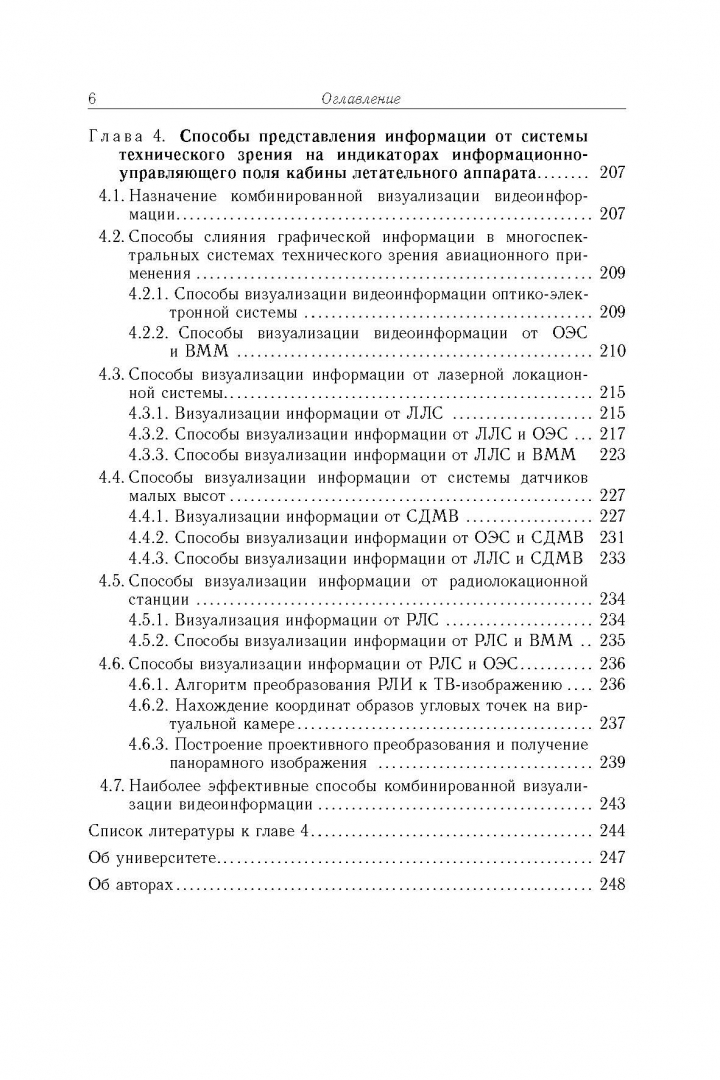 ОписаниеРассмотрены основные подходы и концепции построения систем ввода-вывода изображений в авиационных системах технического зрения, позволяющие оптимизировать обеспечение пилота графической информацией о закабинном пространстве и повысить его ситуационную осведомленность с целью повышения безопасности полетов воздушных судов. Рассмотрены основные типы сенсоров систем технического зрения авиационного применения: оптического и теплового диапазона, время-пролетные камеры, локационная станция и радиолокационная станция, индикаторы информационно-управляющего поля кабины летательного аппарата, нашлемные системы целеуказания и индикации; приведены обзор и анализ способов совместной визуализации нескольких реальных изображений от различных сенсоров многоспектральной системы технического зрения и синтезированного изображения в зависимости от комплектации, условий видимости, этапа выполнения полетного задания с учетом возможных режимов работы. Предназначена специалистам в области разработки, производства и эксплуатации бортового радиоэлектронного оборудования, а также студентам и аспирантам авиационных и IT-вузов.СвернутьРассмотрены основные подходы и концепции построения систем ввода-вывода изображений в авиационных системах технического зрения, позволяющие оптимизировать обеспечение пилота графической информацией о закабинном пространстве и повысить его ситуационную осведомленность с целью повышения безопасности полетов воздушных судов. Рассмотрены основные типы сенсоров систем технического зрения авиационного применения: оптического и теплового диапазона, время-пролетные камеры, локационная станция и радиолокационная станция, индикаторы информационно-управляющего поля кабины летательного аппарата, нашлемные системы целеуказания и индикации; приведены обзор и анализ способов совместной визуализации нескольких реальных изображений от различных сенсоров многоспектральной системы технического зрения и синтезированного изображения в зависимости от комплектации, условий видимости, этапа выполнения полетного задания с учетом возможных режимов работы. Предназначена специалистам в области разработки, производства и эксплуатации бортового радиоэлектронного оборудования, а также студентам и аспирантам авиационных и IT-вузов.СвернутьСвернуть