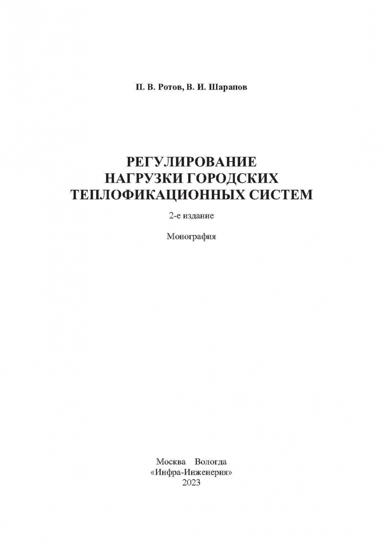 Ротов, Шарапов: Регулирование нагрузки городских теплофикационных систем. Монография