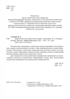 ОписаниеИзложен опыт проведения технического диагностирования металлургических машин в промышленных условиях. Даны информационные основы виброметрии. Рассмотрены технические характеристики различных видов металлургических машин. Приведены диагностические признаки развития повреждений виткоукладчиков проволочных прокатных станов.Для специалистов металлургических предприятий, занимающихся эксплуатацией и ремонтом механического оборудования. Может быть использовано студентами-механиками металлургических специальностей.Изложен опыт проведения технического диагностирования металлургических машин в промышленных условиях. Даны информационные основы виброметрии. Рассмотрены технические характеристики различных видов металлургических машин. Приведены диагностические признаки развития повреждений виткоукладчиков проволочных прокатных станов.Для специалистов металлургических предприятий, занимающихся эксплуатацией и ремонтом механического оборудования. Может быть использовано студентами-механиками металлургических специальностей.