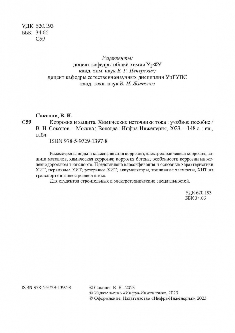 Виктор Соколов: Коррозия и защита. Химические источники тока