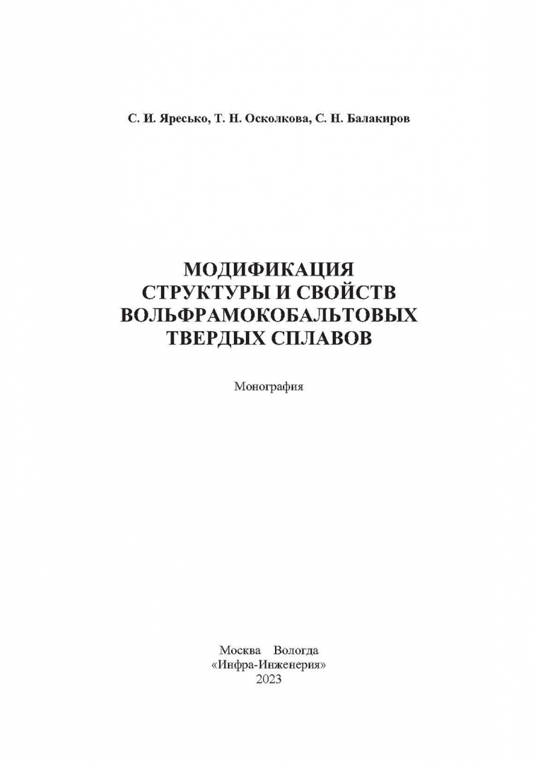 Яресько, Осколкова, Балакиров: Модификация структуры и свойств вольфрамокобальтовых твердых сплавов. Монография