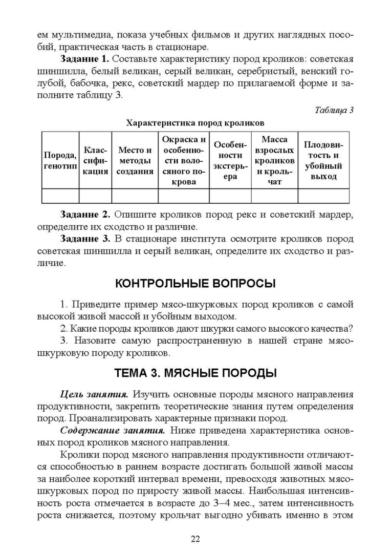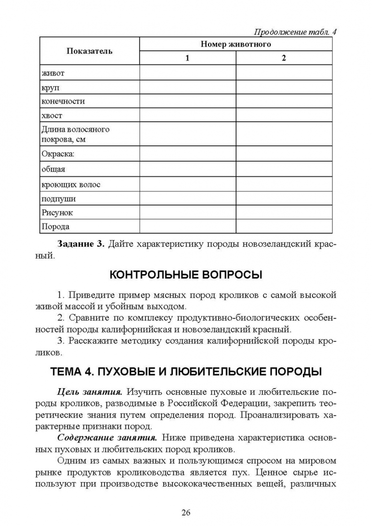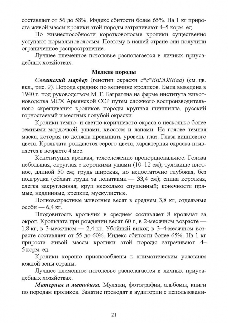 ОписаниеПрактикум состоит из 5 глав и 26 тем. Первая глава рассматривает основные породы кроликов по направлениям продуктивности и кроссы, вторая - экстерьерно-конституциональные особенности кроликов, третья глава подробно освещает вопросы племенной работы, четвёртая - основные корма, используемые в кролиководстве, и методику составления рационов, пятая - особенности производства продуктов кролиководства. По всем темам разработаны задания для самостоятельной работы, в конце глав приведены тесты для самоконтроля и литература.Пособие предназначено для студентов высших учебных заведений, обучающихся по направлению "Зоотехния".Практикум состоит из 5 глав и 26 тем. Первая глава рассматривает основные породы кроликов по направлениям продуктивности и кроссы, вторая - экстерьерно-конституциональные особенности кроликов, третья глава подробно освещает вопросы племенной работы, четвёртая - основные корма, используемые в кролиководстве, и методику составления рационов, пятая - особенности производства продуктов кролиководства. По всем темам разработаны задания для самостоятельной работы, в конце глав приведены тесты для самоконтроля и литература.Пособие предназначено для студентов высших учебных заведений, обучающихся по направлению "Зоотехния".